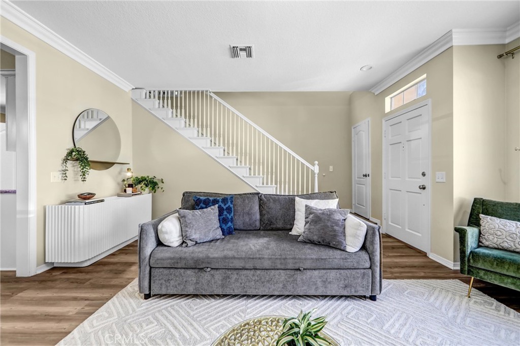 Welcome to this beautifully updated residence at 1849 10th Avenue #E in Monrovia, showcasing magazine worthy finishes and thoughtful upgrades throughout that give the home a fresh, designer-inspired feel. Step into a spacious, updated living room highlighted by luxury vinyl flooring, custom light fixtures, and a redesigned fireplace that serves as a stylish focal point. Elevated by elegant architectural details and upscale touches throughout, this inviting space is perfect for entertaining or simply relaxing at home, blending warmth, comfort, and modern design. The dining room continues the home’s polished aesthetic and sits adjacent to the kitchen, where you’ll find a large pantry, ample cabinet space, and newer appliances, including a refrigerator and microwave. French doors off the dining area create a seamless indoor outdoor flow and open directly to the updated backyard, making the space ideal for both everyday living and entertaining. Completing the first floor is a generously sized bedroom and full bathroom, along with updated windows that enhance both comfort and style. Throughout the home, thoughtful improvements add to both convenience and functionality, including upgraded designer lighting, smart home features, additional outlet upgrades, and well maintained major systems. The HVAC ducting has been professionally cleaned, the air conditioning has been recently serviced, and the home also benefits from a recently installed water heater and whole house water softener system. Upstairs, newer upgraded carpeting continues throughout, leading to a spacious primary suite complete with a walk-in closet and a brand new, designer inspired bathroom featuring custom finishes, dual sinks, an oversized walk-in shower, and updated flooring. Two additional spacious bedrooms and an updated secondary bathroom complete the upper level, while one of the larger bedrooms offers a partial mountain view. The laundry room has also been updated with new flooring for a clean, refreshed feel. Additional highlights include an epoxy finished garage floor and app-based remote garage access, adding even more convenience to this well appointed lease. With meaningful updates throughout, stylish finishes, and a move in ready feel, this is a rare opportunity to lease a beautifully upgraded home in Monrovia.