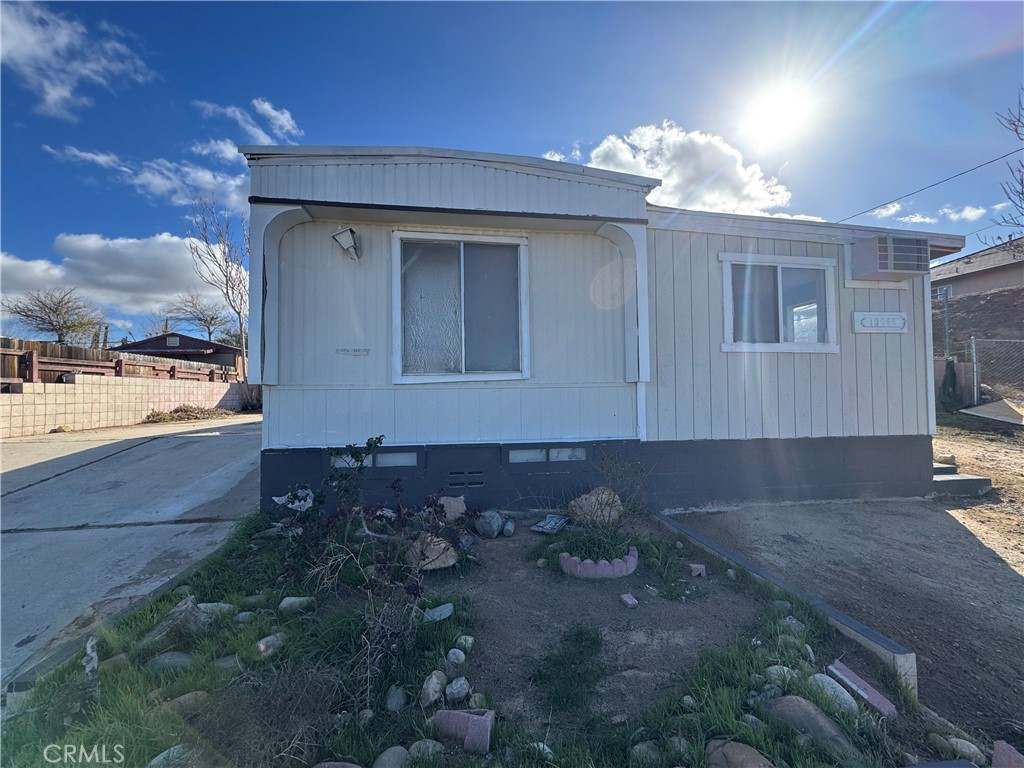 Manufactured Home on Owned Land – Fixer Opportunity Manufactured home offering 2 bedrooms and 1 bathroom with approximately 1,248 sq ft of living space, situated on a 7,424 sq ft lot. Land is owned (no space rent). Property requires repairs and updating. Located in a quiet neighborhood with no neighbors directly in front, providing open desert and flatland views and added privacy. Lot offers space and flexibility for improvements. Property is being sold as-is. Buyer to verify all information including square footage, lot size, condition, zoning, and utilities.