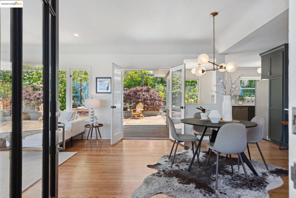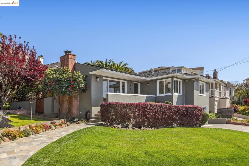 Enchanting and magical describe this elevated, thoughtfully designed yet cozy retreat. Nestled on a gentle hill in coveted Upper Rockridge, it’s surrounded by green lawns, blooming flowers, and birdsong in the treetops. Welcome—your peaceful sanctuary awaits. Natural light floods the expansive living room through wide windows, revealing stunning views of San Francisco, the Bay, and its iconic bridges. French doors open to the backyard, where indoor comfort flows seamlessly into outdoor beauty. It’s perfect for summer soirées or quiet mornings with coffee and hummingbirds. The sun-filled kitchen, recently updated with designer finishes, features a cozy breakfast nook overlooking the gardens—ideal for sharing moments and meals. Three spacious bedrooms are filled with sunshine. The luxurious bathroom showcases Carrara marble and a European-style shower-tub combo, offering a spa-like escape. Enjoy nearby Lake Temescal for biking, picnics, or summer swims. Montclair Village and Rockridge dining and shopping are within a mile, and the Trans-Bay bus is just blocks away. Don’t miss the opportunity to make this slice of heaven your own.