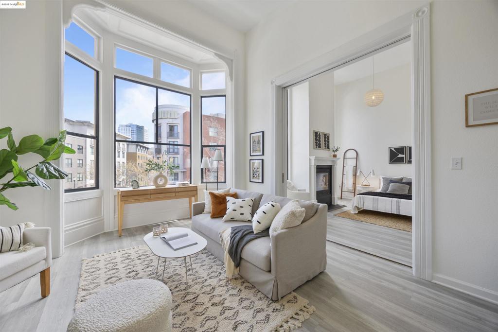 Swanky Uptown Oasis – Where History Meets High Style Own a piece of Oakland’s vibrant Uptown district with this stylish corner-unit condo that blends modern updates with classic Victorian charm. Featuring soaring 14-foot ceilings, oversized bay windows, in unit laundry, and a skylight, this home is filled with natural light and character. Thoughtful details like custom millwork and vintage door handles add charm, while the updated kitchen offers stainless steel appliances and wood cabinetry. Two gas fireplaces create a cozy atmosphere, and the spacious bedroom provides plenty of room to relax. Plus, there’s extra attic storage for added convenience. With a 99 Walk Score, 94 Bike Score, and 85 Transit Score, this location puts everything at your fingertips. Grab a coffee at The Awaken Café, enjoy local dining, or catch a show at The New Parish, Paramount Theatre, or Fox Theatre. Stay active at Great Western Climbing Gym, and take advantage of nearby Whole Foods and Sprouts for easy grocery runs. Just a quarter mile from BART with access to buses, trains, ferries, and freeways, commuting is a breeze. EASY PARKING-There are parking garages just a few minutes’ walk from the building, available for rent at approximately $6-$7 per day. Buyer to verify availability and details.