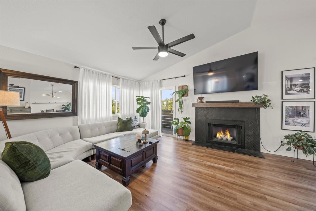 Stunning 3-bedroom, 2.5-bath home offers sophisticated upgrades throughout. Step inside to tall ceilings, an open-concept layout with a spacious living room that flows seamlessly into the dining area and remodeled kitchen. The kitchen has been thoughtfully updated with sleek quartz countertops, matching backsplash, upgraded range, modern light fixtures, & painted cabinets. Enjoy plenty of natural light and access to a deck with picturesque views. Luxury vinyl plank flooring runs through the main living spaces, with cozy carpet in the bedrooms. Going down the stairs, you’ll find all 3 bedrooms, 2 full bathrooms, & a beautifully redesigned laundry closet equipped with a full-size washer and dryer. Each bedroom features private outdoor access, while the expansive primary suite includes 3 closets—offering ample storage. The front yard features a charming seating area with a planter box, perfect for relaxing outdoors. Two EV charger for added convenience. A newly added concrete pad for RV parking, additional vehicle, or storing boats & recreational toys. Located just minutes from major freeways, schools, parks, restaurants, and more.