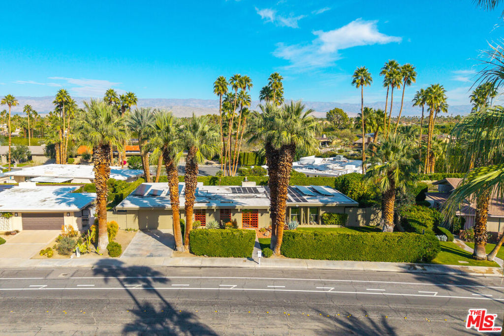 An authentic Mid-Century home invites you to embrace the lifestyle that only Palm Springs can offer. Set in the famous Indian Canyons neighborhood, this remodeled 4-bedroom, 3-bathroom residence sits on an oversized lot where you own the land and pay no HOA fees. Framed by breathtaking, unobstructed views of the San Jacinto Mountains, the backdrop feels straight out of a postcard. Designed for effortless desert living, the home blends iconic Mid-Century architecture with tasteful modern updates. The open-concept living and kitchen area is ideal for entertaining, where seamless indoor-outdoor living takes center stage. The newly remodeled chef’s kitchen, featuring custom teak cabinetry, quartz countertops, stainless steel appliances, and a central island are perfect for morning coffee or sunset cocktails. Sleek flooring flows throughout, creating a cohesive and sophisticated aesthetic. Now with two primary suites that offers bright, inviting retreats, each with walk-in closets and direct access to the private yard. The vibrant renovated custom bathrooms make a statement with accent tiles, quartz vanities and backlit mirrors. Energy-efficient upgrades include paid solar panels, Fleetwood sliders, dual-pane windows, custom shades throughout, a Trane A/C , tankless water heater, and a new separate A/C system in the primary bedroom keeping comfort high and utility costs low. Step outside and let the sunshine bathe you in warmth as the sparkling pool and spa beckon. The private, serene yard is a true oasis, complete with fruit trees, multiple lounging areas, and the perfect setting for evening stargazing. Located in desirable South Palm Springs, away from the windy zone and in an active area, close distance to shops, dining, and hiking trails. This is the home you have been dreaming of.
