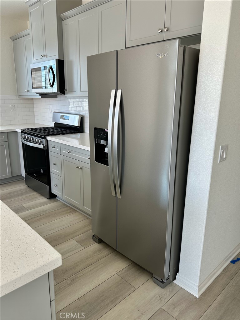 Welcome to this beautifully upgraded single-story home with NO REAR neighbors! Bright and airy, the residence features designer wide vinyl plank flooring throughout the main living areas. The spacious primary suite offers dual vanities, a soaking tub, and a walk-in shower, while two additional bedrooms each include walk-in closets. The home is appointed with elegant quartz countertops and comes complete with a refrigerator, washer, and dryer. The garage includes an EV charging outlet, adding modern convenience. Enjoy a professionally landscaped backyard ideal for relaxation or entertaining. Owned solar panels enhance energy efficiency and reduce utility costs. Ideally located just minutes from UCR and nearby shopping and dining.