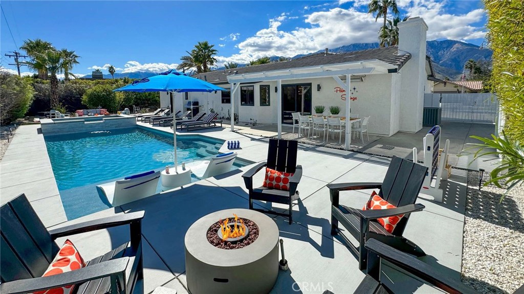 Welcome home to Nicola Oasis; your private, luxury modern retreat in the heart of Palm Springs. Step outside to your completely secluded, oversized backyard featuring a huge new saltwater pool, tanning shelf and 14-person spa; an 8-person outdoor dining area with infrared heat, Adirondack chairs surrounding a gas fire pit, cozy seating/working areas tucked into a zen fruit tree garden, outdoor games and ample space to relax and enjoy the beautiful Palm Springs sunrises and sunsets. Step inside to 1700 square feet of living space featuring midcentury design by Tim Pontarelli and: Four bedrooms, each with plenty of closet space including a dresser and luggage rack Two full spa bathrooms, each with a double vanity and rain shower head A huge, open chef’s kitchen with two wine refrigerators plus Nespresso and Keurig coffee makers Three dedicated workspaces with plenty of light, desk space and power outlets Large living room with vaulted ceilings and gas fireplace Hi-speed mesh wifi throughout, and two large Roku Smart TVs featuring all the popular streaming apps like Netflix, Hulu, HBO max and YouTube TV. Nicola Oasis also features a full-sized laundry room with washer and dryer, a 2-car garage, plus an oversized driveway with tourbus/RV parking. Seasonal rates vary.