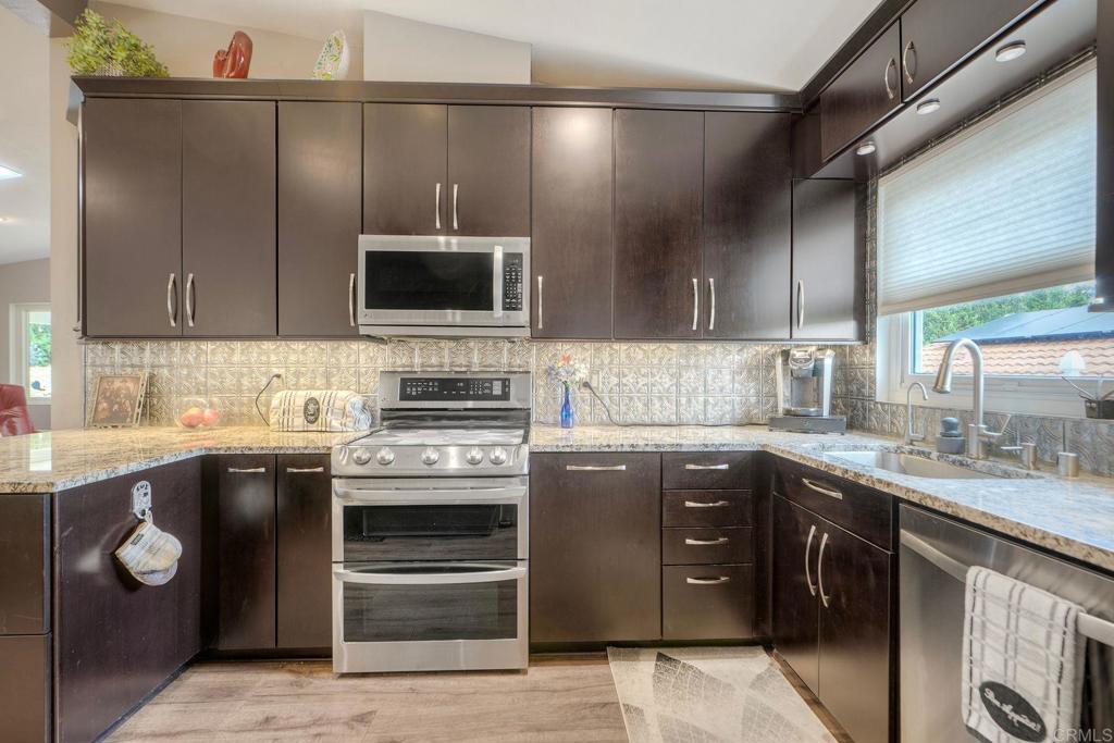 Stunning home beautifully updated! Home offers functionality with a long list of modern enhancements! Wall removed in kitchen to acquire a more open concept*Elegant recessed lighting*brand new kitchen contemporary finishes*granite counters*LED lighting*New flooring for a fresh cohesive look! Bar frig/ wine rack for entertaining* New refrigerator* Energy efficient SOLAR owned*New roof*Murphy bed*Primary remodel bedroom for efficiency*Gorgeous oversized shower with 2 shower heads custom remodeled room extremely efficient* custom front door* new windows with disappearing screens*Sought after west side location *direct access from garage to house*Garage cabinets/shelving *Spacious private yard with natural gas firepit boasting landscape lighting & overhead yard illumination an entertainers dream quiet/private* Own the land, own the house, gated senior community enjoy the ocean breezes!