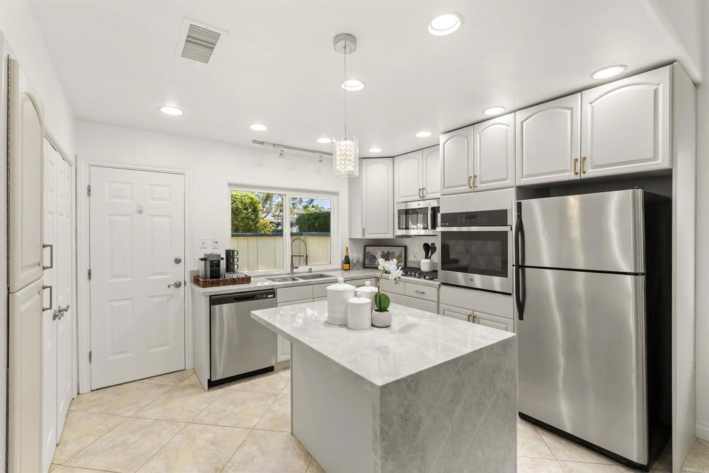 Disclaimer: we cannot be held responsible if your guests become jealous when they see how nice your home is! As soon as you walk through the front door you are greeted with high ceilings and an open floor plan that connects the warm and spacious living room to the designer kitchen. This stunning townhome features REAL Taj Mahal Quartzite in the kitchen and bathroom countertops, a natural and extremely durable stone that is only typically found in multimillion dollar homes. You also have REAL marble tile from the floor to the ceiling in both bathrooms and around the fireplace in the living room. Floors are a timeless porcelain tile imported from Italy, and the bedrooms feature a high quality and super soft carpet. Additional upgrades include new top of the line stainless GE appliances, advanced Samsung all-in-one washer/dryer machine in the laundry room, new lighting and plumbing fixtures throughout, new high efficiency water heater, new epoxy garage floors, advanced Lutron dimmable lighting system that can adjust not only the brightness of the lights throughout the home but also the color of the lights. Home also features full home air conditioning with Nest thermostat, private patio off the kitchen and primary bedroom and a large and private deck off the living room. Large primary bedroom features 2 separate closets, large bathroom with walk-in shower. Secondary bedroom is generous in size and secondary bathroom features new soaking tub. Community features only 48 units in the peaceful complex, low HOA fees, pool/spa and weekly landscaping. Location is excellent! Home is in walking distance to great schools, groceries, major freeways and public transportation, hospitals and Cal State San Marcos University. Don’t miss this amazing opportunity to have all the luxury designer features that you have always dreamed of!