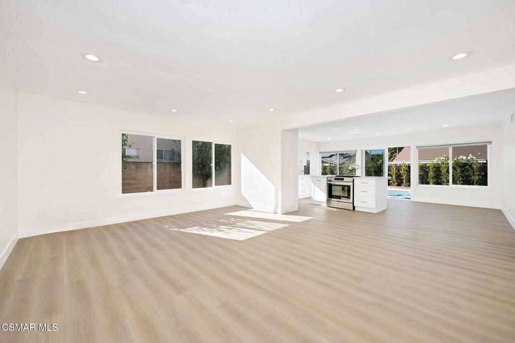 Experience the perfect blend of modern luxury and everyday comfort in this beautifully renovated single-story pool home.Inside, you’ll find luxurious vinyl plank flooring throughout, combining durability with elegant style. The open-concept layout seamlessly connects the spacious living room and gourmet kitchen, bathed in natural light from expansive brand new windows.The kitchen is a true showstopper featuring gleaming quartz countertops, custom cabinetry with ample storage, a newly added island with a built-in stovetop, and all-new stainless steel appliances ready for your culinary adventures.Fresh interior and exterior paint give the home a crisp, like-new feel. Outside, enjoy a private backyard oasis complete with a sparkling pool, relaxing jacuzzi, and a side yard with lush grass and mature fruit trees perfect for entertaining or unwinding in peace.Additional upgrades include recessed lighting throughout, beautifully remodeled bathrooms, and more. This move-in ready home offers modern living at its finest.Welcome home.