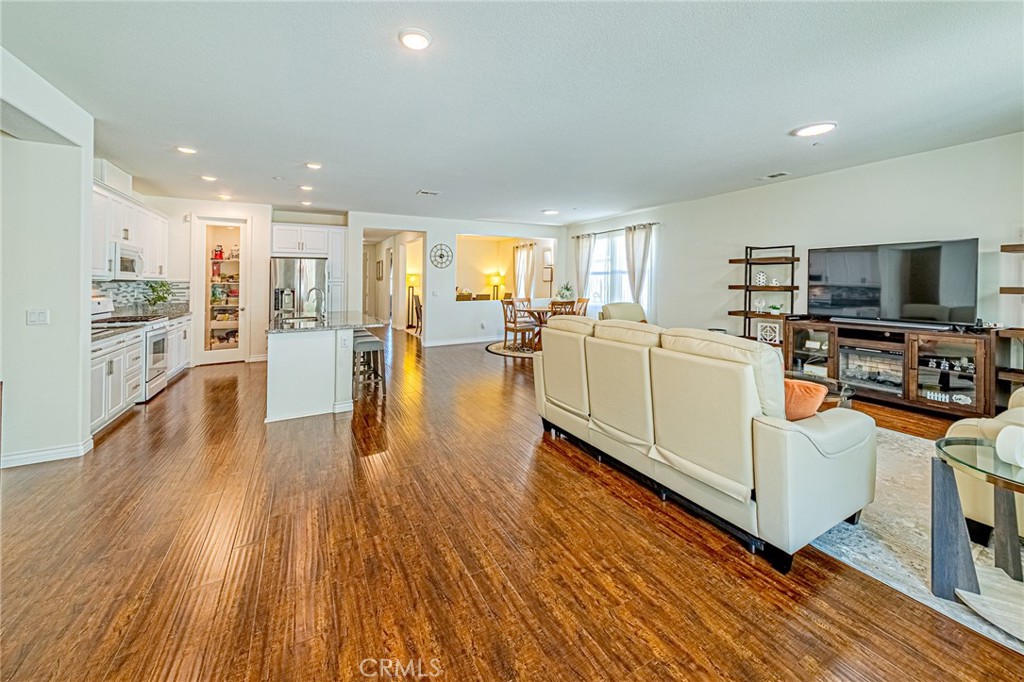 Nestled against the scenic foothills of Riverside’s Spring Mountain Ranch, this beautifully upgraded single-story home offers modern elegance, open living, and breathtaking mountain views. Built in 2018, the home features 4 spacious bedrooms, 3 full bathrooms, and a bright, open floor plan designed for today’s lifestyle. The modern kitchen is a true showpiece, with white shaker cabinetry, granite countertops, designer glass-tile backsplash, stainless steel appliances, and a large center island perfect for gathering. The walk-in pantry with glass door adds both function and style. The open-concept layout flows seamlessly to the spacious great room and dining area, creating an inviting space filled with natural light and warmth. The primary suite offers a peaceful retreat with a large walk-in closet and a spa-inspired bath featuring dual sinks, quartz countertops, a soaking tub, and a separate shower. Three additional bedrooms and two full baths provide comfort and flexibility for guests or home office use. Step outside to enjoy your own private garden oasis—a beautifully landscaped yard with mature fruit trees (including fig, pomegranate, pear, and more), colorful blooms, and sweeping mountain views. The spacious paved patio and covered sitting area offer the perfect setting for outdoor dining or morning coffee surrounded by nature. Additional highlights include wood-style flooring throughout, recessed lighting, central HVAC, neutral paint tones, and an attached two-car garage with upgraded glass-panel door. Situated on an 11,326 sq ft lot with no HOA, this home combines privacy, modern comfort, and a true connection to the outdoors. Enjoy access to the community’s 6-acre park with basketball and volleyball courts, playground, and walking trails. Conveniently located near UC Riverside, Loma Linda Hospital, and major freeways (215, 60, 10, and 91). This is more than a home—it’s a lifestyle. Experience modern living with serene mountain views and a backyard that truly blooms with life.