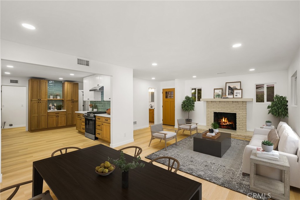 Welcome to 21032 Baltar Street, a beautifully renovated pool home that blends modern comfort with timeless California style. This 4-bedroom, 3-bath residence features a new roof, new HVAC system, and a highly desirable floor plan with finishes curated by Maverick Design. Inside, discover designer-selected flooring throughout, a poised fireplace, and an inviting, open layout ideal for both everyday living and effortless entertaining. The chef-inspired kitchen has been tastefully elevated with gorgeous new cabinetry, quartz countertops, a full-height backsplash, and a dedicated coffee station flanked by dual pantry cabinets. A new gas range and modern hardware complete this stylish, highly functional space that flows seamlessly into the dining and living areas. The primary suite, adorned with vaulted ceilings, offers a peaceful retreat with private backyard access – perfect for morning coffee poolside or unwinding in the evening. The updated en-suite bath boasts spa-inspired tilework, a walk-in shower, and polished fixtures. Three additional bedrooms and two more well-appointed bathrooms, including a secondary en-suite and another with a dual vanity, provide flexibility, comfort, and thoughtful design. Head outside to your own private oasis, complete with a shimmering pool, generous patio space for lounging and barbecuing, and mature landscaping that sets the stage for gatherings year-round. Additional highlights include new windows, a two-car garage with new motor, and a spacious laundry room with utility sink. Ideally located near Westfield Topanga, The Village, parks, and local favorites. Bring on the hype, this one absolutely deserves it!