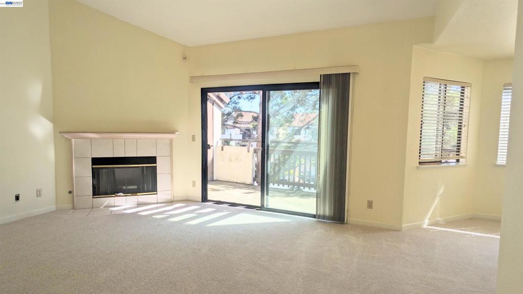 Top-floor 2BD/2BA condo in the gated Mesa Verde community in Hayward. Approx. 1,025 sq ft featuring a vaulted-ceiling living room with cozy gas-start fireplace and access to a private balcony that brings in natural light and fresh air. The primary suite also features vaulted ceilings, a walk-in closet, and a private bath with double vanity. Includes a detached one-car garage plus a second dedicated parking space. Mesa Verde offers resort-style amenities including five pools and spas, tennis courts, fitness center, and recreation room with ping pong and pool tables, all set among mature landscaping and Spanish-style architecture. Convenient location within minutes of shopping and dining, with easy access to BART and Highways 580 and 880 for Bay Area commuting. Some of the photos have been virtually staged to help illustrate the potential layout and use of the space. Each virtually staged image is followed by the same photo in its original, unaltered form for reference.