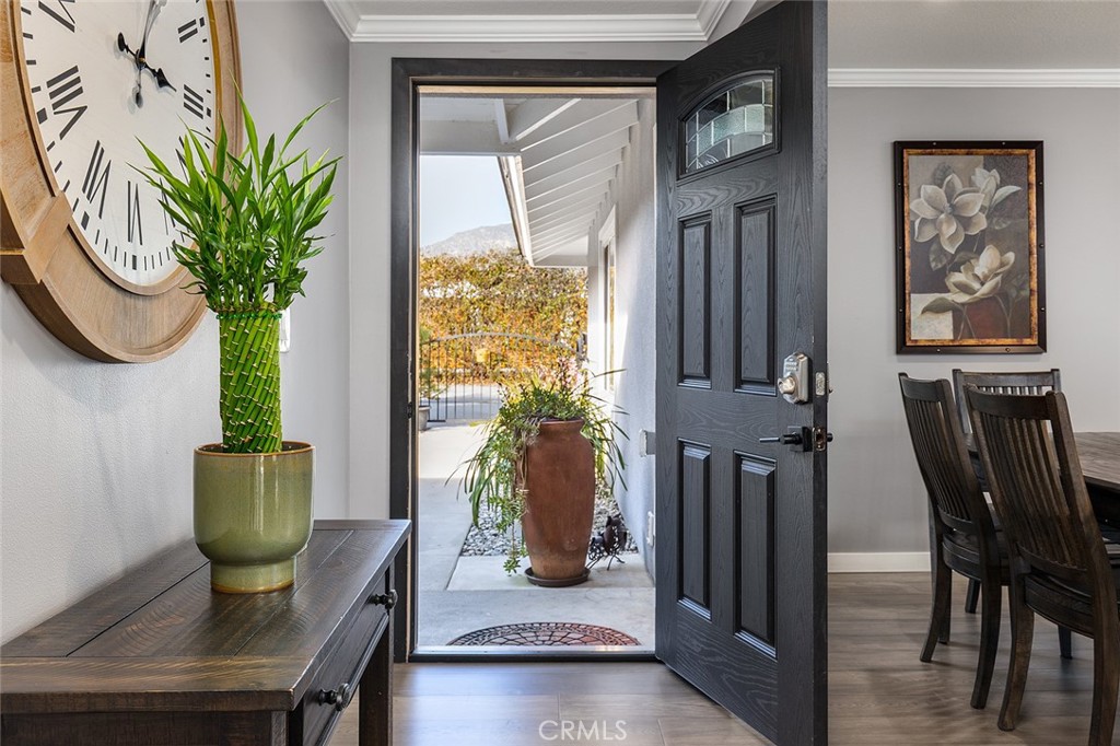 This charming Mayflower Village single-story home located on a private road, has been extensively updated and remodeled throughout and shows true pride of ownership at every turn. Boasting a seamless floor plan, this home captures your attention as you step into the welcoming foyer. Natural light fills the living room w/fireplace and sliding doors to the outside. The heart of this home is the updated kitchen, featuring custom cabinetry, quartz counter tops, recessed lighting, center island, newer appliances, and counter space for the avid chef, ideal for gatherings with family & friends. Three spacious bedrooms offer ample closet space and ceiling fans. One bedroom has an ensuite bathroom with step-in shower; the other two share a main hallway bathroom with tub and shower offering a blend of timeless elegance and modern comfort. Witness a home meticulously cared for, with attention to detail present in every room. Exceptional living continues into the serene outdoor space. Enjoy the drought tolerant private walled backyard, mature landscape & fruit trees, creating a perfect ambiance for relaxation and entertaining. INVALUABLE FEATURES INCLUDE: 2-car attached garage, w/laundry area, large driveway can easily fit 6 cars in front. Newer furnace, HVAC and duct work, newer windows, water softener system, custom solid wood interior doors, all new electrical outlets and switches, crown molding and much more. Come and see this exceptional home in person to truly appreciate all it has to offer! This is a one-of-a-kind community, with a true village feel, where it is common to see neighborhood kids biking by and walkers strolling at dusk. There is an annual 4th of July parade held in the village. Plenty of shopping and food options on Huntington Drive and Myrtle Avenue, including the all new In-N-Out, Trader Joe’s and more.