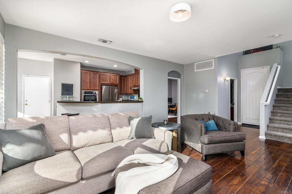 Welcome to this impeccably maintained 4-bedroom, 3-bath detached home in Otay Ranch’s WindingWalk community. With a comfortable layout and thoughtful upkeep throughout, this home is ready for its next owner to move in and enjoy. The main level features tile throughout the entire downstairs, combining practicality with easy maintenance. A full bedroom and bathroom on the first floor provide flexibility for guests, multigenerational living, or a convenient home office. The kitchen is warm and functional, featuring dark cherry wood cabinetry, granite countertops, stainless steel appliances, and a gas range for everyday cooking. It opens to the dining and living areas, where a cozy fireplace anchors the space and creates a welcoming setting for daily living and casual entertaining. The washer, dryer, and refrigerator are all included, adding to the home’s move-in-ready appeal. Upstairs, the primary bedroom serves as a comfortable retreat with an en-suite bathroom offering dual sinks, a soaking tub, a walk-in shower, and a spacious walk-in closet. Additional bedrooms are well-sized and versatile for a variety of needs. Outside, the private backyard provides a relaxing setting with a built-in fire pit and seating area—ideal for quiet evenings or spending time with friends and family. Located near Enrique S. Camarena Elementary, Eastlake Middle School, and Olympian High School, this home is set within a thoughtfully planned, walkable neighborhood with nearby parks and community spaces. Shopping, dining, and everyday conveniences are easily accessible, with the Otay Ranch Mall located directly across the street. WindingWalk is known for its welcoming atmosphere and community amenities that support an active, connected lifestyle.