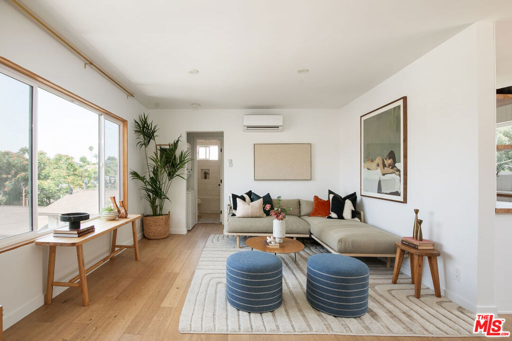 Tucked into a stylish mid-century modern building in the heart of Echo Park, this fully renovated 1BD/1BA upper unit offers elevated living with sweeping views and thoughtful design. As a bright corner unit, natural light pours in from windows on all sides, framing vistas of the San Gabriel Mountains from the living room. Move-in ready with updated systems and a sleek mini-split HVAC unit, the home pairs modern convenience with organic, curated finishes. The open, airy feel is complemented by clean lines and subtle design touches that bring warmth and calm to the space. Gated, off-street parking adds security and ease, while the sparkling pool invites you to cool off all summer long. Located just a few blocks from Sunset Boulevard, you’ll have Echo Park favorites like Levant Bakery, Canyon Coffee, Bacetti, and Bar Flores practically at your doorstep. A rare combination of location, design, and comfort – this is Echo Park living at its best.