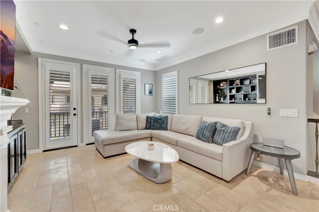 Experience luxurious seaside living in this stunningly remodeled home within the exclusive, resort-like community of The Waterfront. This gated community is just steps from the sand, The Hyatt, The Hilton, and a short stroll to Pacific City, Downtown Huntington Beach, and the iconic HB Pier. Tucked in a private, peaceful setting, this nearly 1,900 sq ft home has been thoughtfully upgraded with hard surface flooring, crown molding, designer light fixtures, custom paint, ceiling fans throughout, and central AC. The gourmet kitchen is a chef’s dream, showcasing upgraded cabinetry, quartz countertops, a herringbone tile backsplash, and top-of-the-line appliances. Just off the kitchen is a built-in office nook, ideal for working from home or staying organized. The dining area features a custom accent wall and flows seamlessly into the spacious living room, where a cozy fireplace with built-in shelving creates a welcoming atmosphere. Step out onto the balcony to enjoy views of the tranquil courtyard below—perfect for morning coffee or sunset relaxation. The expansive primary suite offers a large walk-in closet with custom organizers and a spa-inspired bath with dual vanities, a soaking tub, and a walk-in shower. A secondary en-suite bedroom on the main level includes mirrored closet doors and a fully renovated private bath, direct access to the front patio ideal for guests or multi-generational living. Additional highlights include a separate laundry room and an attached two-car garage with epoxy floors and built-in storage. Enjoy resort-style amenities just a short walk away, including a sparkling community pool and spa with BBQ areas. With the beach less than 500 yards away and access to Hyatt and Hilton amenities, every day feels like a vacation.