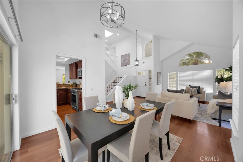 This beautiful two-story home sits on a prime corner lot and offers a perfect blend of comfort, style, and convenience. The property features a two-car garage, a spacious driveway, and professionally landscaped grounds that create wonderful curb appeal. Inside, high ceilings and an open floor plan provide a bright and airy feel, enhanced by large sliding doors that bring in abundant natural light. The home includes recessed lighting throughout, newly painted interiors, hardwood flooring, and a warm gas fireplace with a decorative mantle that anchors the living space. The kitchen is both functional and inviting, featuring cherry wood cabinetry, granite countertops, stainless steel appliances, a five-burner stove, an integrated dishwasher, and a farmhouse-style double sink. Bar seating and a charming breakfast nook provide casual dining options, while the adjacent dining and living areas create a comfortable space for everyday living and entertaining. The home offers three bedrooms and three bathrooms, including a spacious primary suite with a private balcony. The primary bathroom features double sinks, a tub, and generous closet space. Additional interior highlights include linen cabinets, a coat closet with extra storage, and a dedicated laundry room with additional cabinets. Throughout the home, numerous built-ins and cabinets provide exceptional storage. The custom landscaped backyard is designed for relaxation and entertaining, offering a spacious outdoor area with a covered patio, a raised custom stone patio, and a large custom hot tub complete with a waterfall feature. The property is part of an HOA community and is ideally located within walking distance to a top-rated school and a nearby park, while also being conveniently close to shopping centers and everyday amenities.