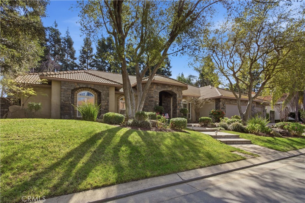 Located in the prestigious Camelot Estates gated community in Central Merced, this stunning 4-bedroom, 3-bath home offers over 2,800 sq ft of luxurious living space on an expansive 12,909 sq ft lot. From the moment you arrive, the elegant stone paver driveway and entry way, custom leaded glass front door, and three-car garage set the tone for exceptional craftsmanship throughout. Step inside to soaring tray ceilings, plantation shutters, and an open-concept layout anchored by a dramatic rock gas fireplace. The gourmet kitchen boasts granite countertops, a large island, matching KitchenAid appliances, abundant cabinet storage with pull-outs, and a spacious walk-in pantry. Retreat to the serene primary suite featuring dual master closets, a gas fireplace, tray ceilings, dual vanities, a bidet toilet, and a relaxing Jacuzzi tub. Additional highlights include an indoor laundry room with sink and pull-out ironing board, surround sound speakers, crown molding, 2 water heaters, 2 thermostats/HVAC’s and thoughtful upgrades throughout. Out back, enjoy a Pebble Tec spa, covered patio, mature landscaping, and custom stone rock pillars—perfect for entertaining or relaxing in style. With easy access to shopping, dining, and top-tier amenities, this is luxury living at its finest.