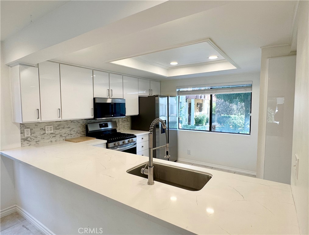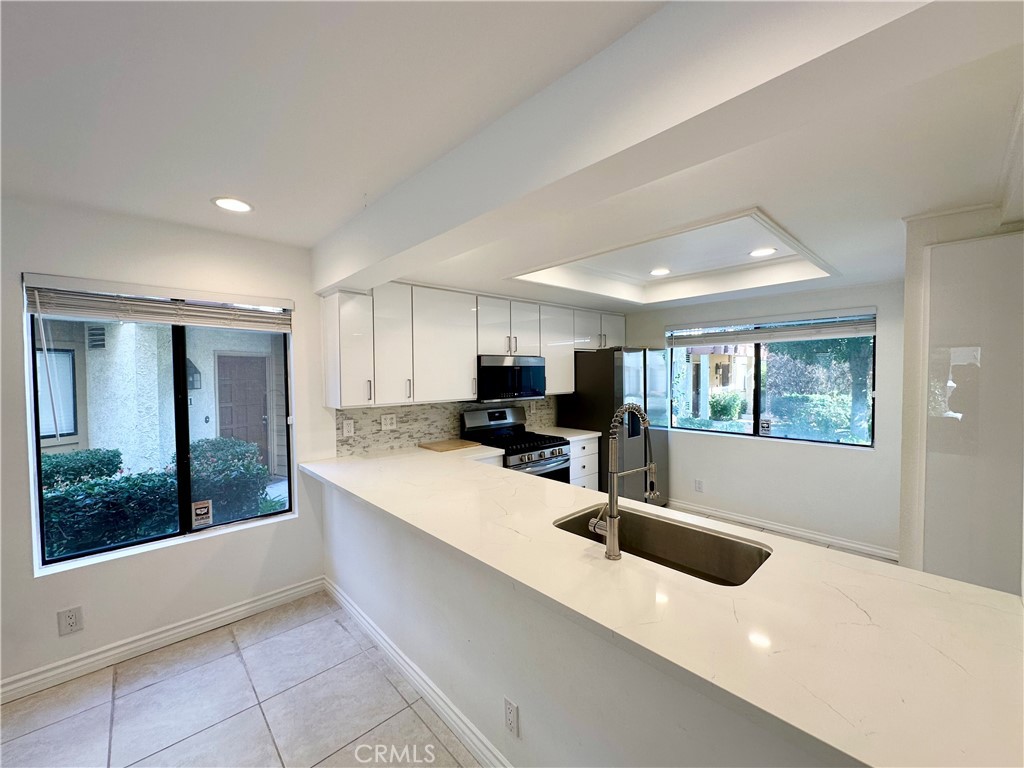 Beautiful end-unit townhouse with waterfront views available in Warner Woodlands II, situated in the renowned Warner Center. It features tile flooring, remodeled kitchen, private laundry, a patio overlooking ponds and streams, fireplace and detached two car garage. Community amenities include a pool, spa, recreational room, gazebo, tennis courts, abundant landscaping and paths with bridges. The townhouse is located near Warner Center Park, with shopping, dining and entertainment options in Woodland Hills.