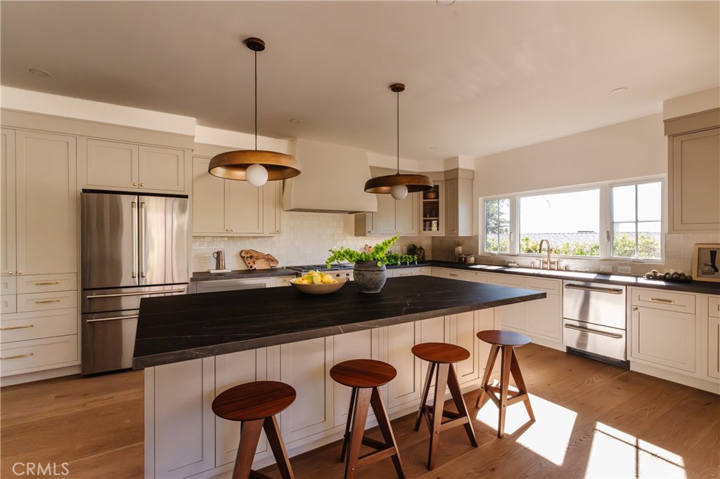 Welcome to 2201 North Hobart Blvd, a fully reimagined residence set just moments from the iconic Griffith Park Observatory—one of Los Angeles’ most historic and cinematic landmarks. Inside, the home has been meticulously rebuilt from the inside out: smooth-finish drywall, new electrical throughout, recessed lighting, wide-plank engineered hardwood floor, and solid-core shaker doors with polished nickel hardware create a refined, cohesive aesthetic at every turn. The heart of the home is a show-stopping chef’s kitchen, anchored by a 9-foot entertainment island topped with honed SapienStone porcelain. Custom inset shaker cabinetry, aged brass hardware, statement lighting, and a top-tier Café appliance suite—including a 48” dual-fuel range, built-in griddle, double ovens, wine cooler, French-door refrigerator, and smart-home connectivity, make this space equally perfect for hosting or everyday living. Spa-inspired bathrooms feature honed marble basketweave floors, custom cabinetry, designer fixtures, and in the primary suite, a dual shower, freestanding tub, and private toilet room. The primary bedroom enjoys a picture-window view of Los Angeles, private deck access, custom display shelving, and an oversized walk-in closet ready for personalization. Living and dining areas are warm and inviting, centered around the original stone fireplace, thoughtfully enhanced with backlighting. A built-in study hallway, abundant storage, and a beautifully finished garage with a custom wood-and-glass door add both function and style. Outside, the home’s curb appeal shines with new paint, hand-carved mahogany double doors, upgraded windows and expansive sliding and bifold doors that seamlessly connect indoor and outdoor living. Landscaped grounds with new sod, irrigation, preserved mature trees, and curated plantings create a tranquil retreat—ideal for entertaining under the stars. A rare opportunity to own a turnkey Los Feliz Estates residence in one of LA’s most storied and beloved neighborhoods—where history, nature, and luxury converge!