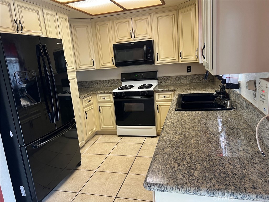 Discover this fantastic opportunity in Ontario, offering a blend of comfortable living and exciting potential. This home features a spacious, bright living area with vaulted ceilings, creating an open, airy atmosphere. The tile flooring throughout the main living spaces ensures easy maintenance. The well-appointed kitchen boasts ample cabinetry, granite-look countertops, and black appliances, including a refrigerator, microwave, and stove/oven. Its functional layout makes meal preparation a breeze. The home offers two bathrooms, one featuring a full shower/tub combo and a vanity, and another with a modern walk-in shower and a sleek black toilet. The bedrooms are ready for your customization, offering good natural light and the opportunity to create your ideal private retreats. Step outside to a generous backyard, perfect for outdoor entertainment, gardening, or simply relaxing in the California sunshine. The property includes a convenient utility shed for extra storage. Located in a desirable Ontario neighborhood, this home is a blank slate waiting for your vision to bring it to its full glory. Don’t miss the chance to make this house your new home!