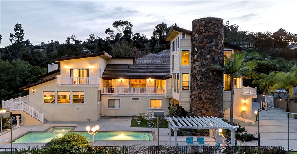 Set behind a private gate in the peaceful hills of Turnbull Canyon, this expansive luxury estate offers a rare blend of privacy, scale, and versatility. Situated on approximately one acre, the main residence is complemented by access to an adjacent additional acre with resort-style amenities, including a tennis court, gym, and sauna. The home features six generously sized bedroom suites and seven bathrooms, thoughtfully designed for comfort, functionality, and multi-generational living. A grand formal living area welcomes you with soaring ceilings, abundant natural light, and an open, elegant atmosphere ideal for both everyday living and special gatherings. The main kitchen is equipped with granite countertops, ample cabinetry, and premium built-in appliances, while a separate professional-style chef’s kitchen with high-powered range and private entry offers added flexibility for entertaining or extended family use. Living spaces flow seamlessly to the outdoor areas, where a sparkling pool and expansive patio create an inviting indoor-outdoor experience. The primary suite serves as a private retreat, featuring scenic canyon views, a private balcony, oversized walk-in closet, and a luxurious bathroom with a soaking tub. Additional upstairs and downstairs suites offer privacy, office potential, and outdoor access, while a large bonus room with built-in bar opens directly to the pool area—ideal for hosting and recreation. Additional highlights include a basement wine cellar, multiple entertainment rooms wired for surround sound, wood flooring throughout, dual A/C systems, security and intercom systems, and a three-car garage with generous storage. Recent improvements such as a new pool pump, retaining wall, and block wall enhance both functionality and value. IMPORTANT: PRICED FOR IMMEDIATE ATTENTION — ADDITIONAL VALUE IN THE LAND. In addition to the primary home, the offering includes access to an adjacent, approximately one-acre parcel — a substantial piece of land with future development potential that has not been factored into the list price. Buyers are essentially acquiring two parcels, making this a compelling opportunity for those seeking long-term value, expansion potential, or a strategic land hold in a highly desirable area.