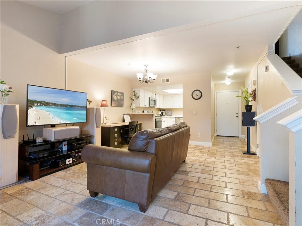 Lovingly maintained 2 bedroom, 1.5 bath condo in the desirable Woodbridge Meadows complex in San Luis Obispo. The first floor features travertine tile floors, a convenient powder bath, generous under stair storage, and an open concept living/dining/kitchen area. The living room features a gas fireplace and extra space perfect for an office. The lower level opens out through a glass slider to a spacious and private back deck surrounded by beautiful mature trees, making it the perfect place to entertain or relax. The upstairs features two large bedrooms and a full bath. The finished single car garage includes the laundry area and storage space. This is all conveniently located close to downtown San Luis Obispo, Meadow Park, and quaint coffee shops and eateries with easy freeway access.