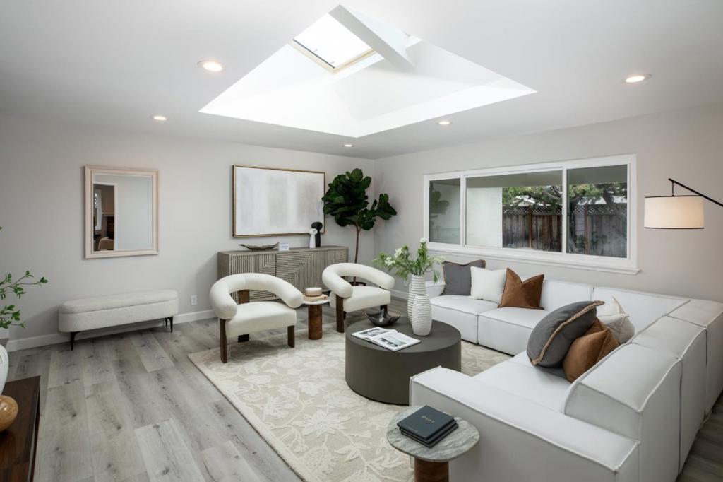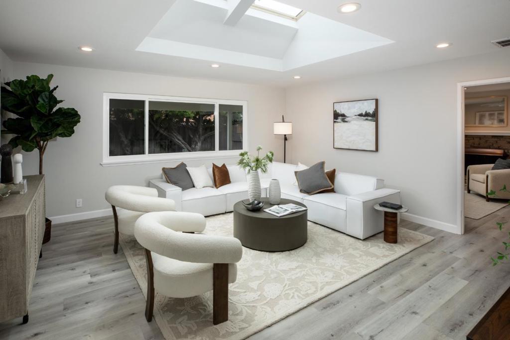 Eye-catching home in the heart of Santa Clara, freshly painted inside and out, with natural light streaming through two skylights and luxury vinyl flooring. The step-down living room and adjacent family room with a wood-burning fireplace create inviting spaces to relax or gather with friends and family. The dining room with wainscoting flows to a bright kitchen featuring quartz countertops, a 5-burner cooktop and abundant cabinetry, perfect for everyday meals or entertaining. Two bedrooms designed for relaxation, one with a charming window seat ideal for reading or morning coffee. The spacious primary retreat has new carpet, dimmable lights, ceiling fan, and French-style glass door opens to the backyard, where mature trees provide shade and privacy. A finished garage with storage and workbench, perfect for projects, or hobbies. Enjoy lush lawns framed by magnolia, cypress, and citrus trees. Centrally located near Target, Santa Clara Town Center, Apple, NVIDIA, parks, and commuter routes. This home blends comfort, convenience, and Silicon Valley living.