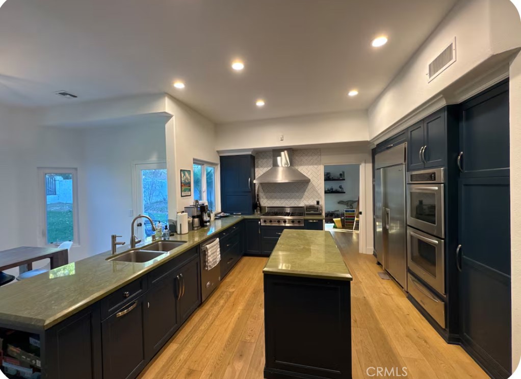 SHORT-TERM LEASE!! Gorgeous Hillside home South of the BLVD! Located on a quiet cul-de-sac, this private 5 bedroom hillside home offers the perfect blend of tranquility and convenience, with direct access to scenic hillside walks and nearby 360-degree lookout points. The approximately 4,000 sq ft home features a dramatic 19-foot foyer, high ceilings, and abundant natural light throughout. The open-concept kitchen flows into the dining area and main living room, complete with a large movie-style projection, fireplace, and seamless indoor-outdoor connection. A second living room functions as a music lounge with a grand piano and drum set and opens to a playroom. Large glass doors lead to a pergola-covered patio, fire pit, and expansive backyard with a 45-foot pool, spa, and a large grassy area ideal for entertaining. The second floor offers three private bedrooms, including a spacious primary suite with en-suite bath, steam shower, soaking tub with hillside views, and an in-room fitness area. Two additional bedrooms share a Jack-and-Jill bathroom. The first floor includes a powder room, an additional full bath, and a laundry room. Two downstairs bedrooms are excluded for owner storage. Close to Mulholland Drive, Warner Center, and Ventura Boulevard, the property provides easy access to shopping, dining, and everyday amenities. Surrounded by mature trees and hillside views, this home offers exceptional privacy, natural beauty, and a resort-style living experience in a highly desirable location.