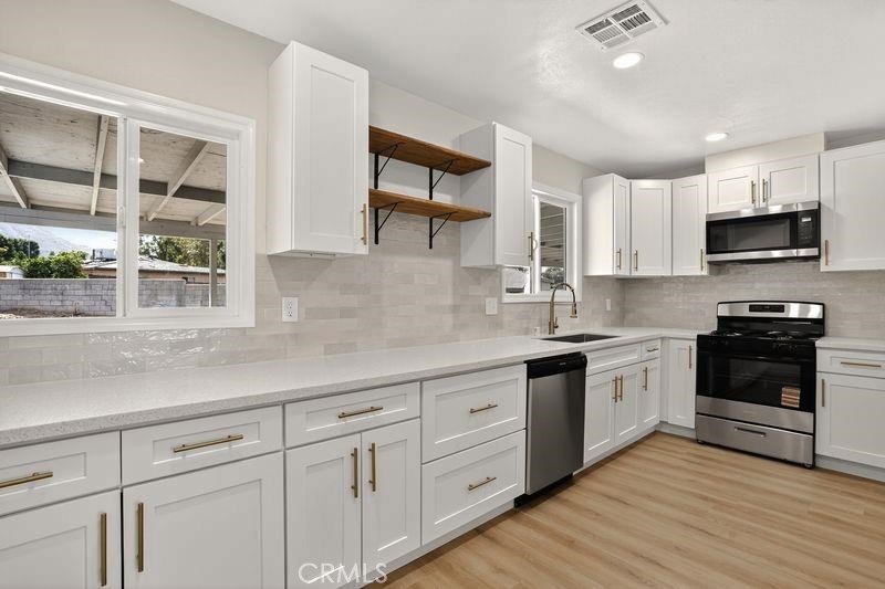 WOW, More than 1/4 ACRE!!! This REMODELED HOME is One of the Cheapest 4 bedroom homes in Grand Terrace!!! FHA, CONV, VA OK!! This house has it all. It has NEW interior paint, NEW Exterior Paint, NEW wood laminate flooring, NEW remodeled kitchen with NEW counter tops, NEW backsplash, NEW stainless steel stove, NEW microwave, NEW remodeled bathroom, NEW vanity cabinets, NEW irrigation system, Central A/C and Heat, NEW interior texture, NEW electrical fixtures, NEW plumbing fixtures, NEW doors and moldings, AND MUCH MORE. Hurry, this one won’t last long