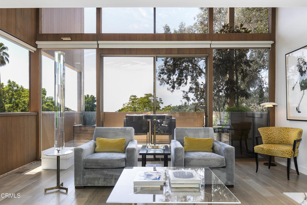 Silver Lake View modern architectural by Architect Richard Holme, 1979, protege of Richard Neutra. Located in the highly desirable Moreno Highlands of Silver Lake with spectacular unobstructed city views that capture the Hollywood sign, the observatory, lush treetops and the city below. Newly renovated large primary suite with stunning city and hillside views. Built as the architect’s personal residence and featured in the New York Times and Dwell. Nestled in the hills, yet minutes from bustling downtown Silver Lake; impeccably maintained, tastefully updated, private, soaring ceilings, walls of glass, indoor/outdoor, with views from almost every window. Multi-level, private and lush terraced gardens with tropical specimen plants, California natives and fruit trees. Several patios, decks and seating areas for lounging and entertaining. Custom redwood fencing, planters, automatic irrigation, Malibu and solar lighting. Ample wall space to hang art throughout, contemporary and tastefully remodeled kitchen and baths with Quartz, Calacatta marble and granite, and designer fixtures. Thermador, KitchenAid, and Miele appliances. Built-in breakfast nook, buffet counter, and walk-in pantry. Engineered wide-plank white oak hardwood floors, ample dramatic gas fireplace with floor to ceiling marble slab. Studio/workshop with built-ins and sink. Large double story garage, abundant storage and parking on property. Located in the highly rated Ivanhoe Elementary School and Marshall School District, and close proximity to all Silver Lake has to offer – designer boutiques, gourmet grocery stores such as Erewhon, Gelson’s, Whole Foods, and McCall’s, as well as trendy eateries – Blair’s, Spina, Botanica and Tartine, as well as vibrant coffee houses, wine bars, yoga, and Pilates studios. Also enjoy the dog park and strolling around the Lake.