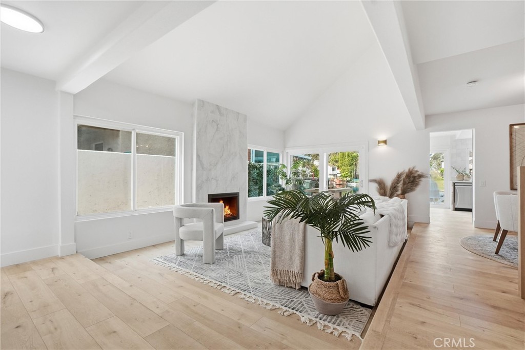 Situated on the peaceful shores of Hidden Lakes in Lake Forest, this fully renovated 3-bedroom, 3-bath waterfront home offers effortless lake living with refined modern style. Designed to maximize light and views, the home features soaring ceilings and expansive windows that showcase tranquil lake vistas, including direct water views from the kitchen and main living areas. The interior is bright and welcoming, highlighted by white walls, wide oak-toned flooring, and thoughtfully selected finishes throughout. The living room centers around a contemporary fireplace and opens to the outdoors through large glass doors, creating a seamless indoor-outdoor connection. The newly updated kitchen overlooks the lake and is equipped with new custom cabinetry, modern hardware, and brand-new appliances, flowing easily into the dining area for everyday living and entertaining. Upstairs the primary suite offers peaceful lake views and a serene retreat, while two additional bedrooms complete the upper level. All bathrooms have been fully renovated with clean, modern finishes. Outside, multiple terraces lead to a private boat dock, perfect for enjoying morning coffee, sunset views, or direct access to the water. A two-car garage and comprehensive renovations throughout complete this move-in-ready lakeside property—an exceptional opportunity to enjoy comfort, privacy, and timeless design on the water.