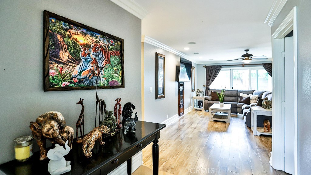 Just listed!!! Welcome to your dream home in the heart of Lake Forest most desirable neighborhoods. This stunning single-story home has modern kitchen with full back splash, quartzite countertops, open concept dinning and living area, ideal for hosting holidays and family gatherings. With four spacious bedrooms, two beautiful full bathrooms with lime stone countertops, crown molding, recessed lighting, baseboards, and laminate flooring throughout the house. Step outside and enjoy a generously sized backyard for outdoor entertaining with patio cover, concrete area and a beautiful built-in BBQ island with bar seating. The home also offers a spacious driveway and a two-car garage. The low monthly HOA of just $124 provides access to Clubhouse, Gym, Ex Room, Spa/Hot tub, Sport Court, Tennis Courts, and several pools, including: Jr. Olympic swimming pool, north pool, a children’s wader pool, an adults-only pool, a family/lap pool, a baby pool and a swim lagoon. Easy access to freeways, location attractions, dinning and shopping. Come see this Gem before it’s gone!