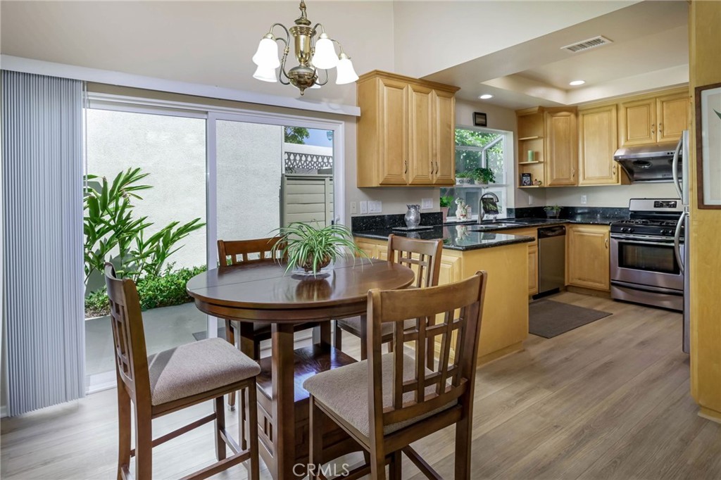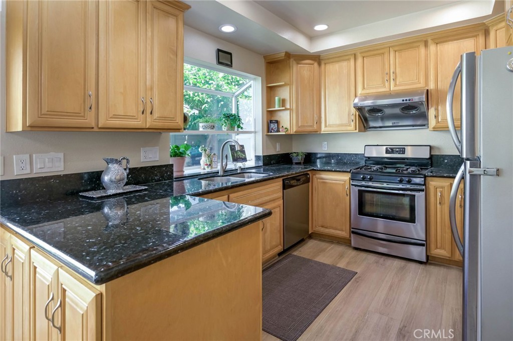Charming single level home (no interior steps), remodeled kitchen with upgraded cabinets, granite counter tops, stainless steel appliances (refrigerator included) and sink, recessed lighting, and garden window. Wall between kitchen and dining area removed to open up the kitchen. Wood-like laminate & tile flooring throughout. Bathrooms recently remodeled with quartz countertops, new sinks, fixtures and lighting. Newer A/C unit and hot water heater. Interior doors recently upgraded from flat to recessed paneled. Decor outlets and rocker switches. Flush recessed lighting. Cathedral ceilings and lots of upgraded windows & sliders and mirrored wardrobes add to the spacious light and bright ambience. Cozy back yard with lush landscaping, citrus trees and large patio. Private front patio off master bedroom. Direct access to two car garage; washer & dryer plus 2nd fridge included. Original valuable hanging artwork is included in the sale. New roof in 2024. Excellent quiet location in the fabulous Village of Woodbridge. Only 100 yards from North Lake Swim Club. Woodbridge has been rated the Best Place in America to raise a Family by Parents Magazine and it’s been named the #1 HOA in the Country. Living in the Village of Woodbridge is equivalent to residency in a high end resort with its unmatched amenities including 22 Pools, 23 Tennis Courts, 4 Pickleball Courts, bocce, basketball, sand volleyball, shuffleboard, numerous parks with play equipment, BBQs & picnic facilities, walking/biking paths, boating, fishing and 2 lakes with Beach Clubs & lagoons. Irvine has ranked as the Safest City in America for 18 Consecutive years and its schools are in the top 2% in the State.