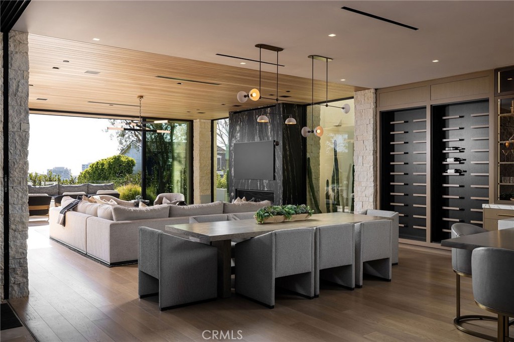 Perched along one of the most coveted stretches of Cliff Drive, this newer-construction architectural masterpiece captures unobstructed sit-down ocean and harbor views from nearly every primary living space. A rare collaboration between Brandon Architects, Erica Bryen Design, and Gonterman Construction, the approximately 5,200-square-foot residence offers 5 bedrooms and 6.5 baths, thoughtfully designed for elevated coastal living and effortless entertaining. Expansive walls of glass create seamless indoor/outdoor flow to two private patios, one with in ground jacuzzi, and a spectacular roof deck with bar, perfectly positioned for sunset entertaining- creating multiple resort-inspired outdoor living environments. Inside, warm-modern interiors are defined by wide-plank flooring, custom millwork, statement stone surfaces, designer lighting, and a striking temperature-controlled wine wall. The showpiece kitchen anchors the main level with bespoke cabinetry, oversized island, and curated finishes, opening to ocean-view living and dining spaces. A private office, beautifully appointed guest suites, and a serene primary retreat with spa-inspired bath complete the interior. An elevator services all levels, enhancing livability, while additional highlights include a three-car garage and whole-house soft water and filtration system. Meticulously executed and perfectly positioned, this is a rare opportunity to own one of the finest newer homes along Cliff Drive in Newport Beach.