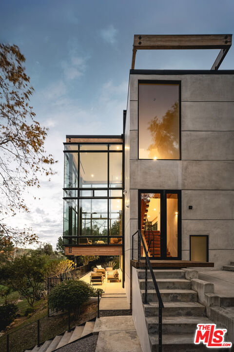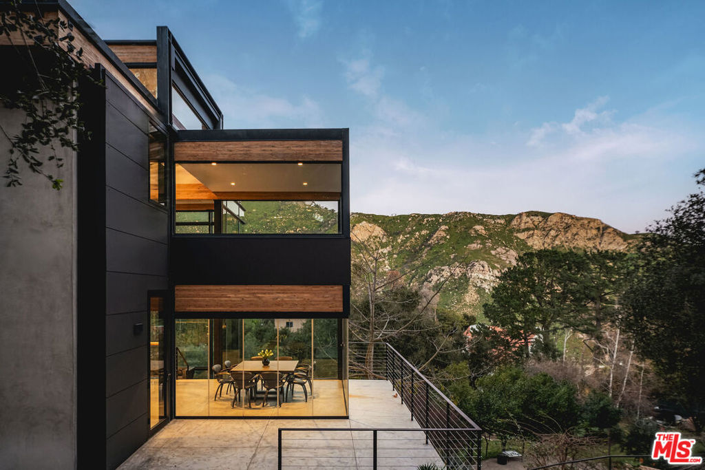 A striking expression of Southern California modernism, 2315 Live Oak Meadows Road is a rare architectural residence designed by Finn Kappe, set on an acre in the secluded hills of eastern Malibu. Framed by mature oaks and canyon terrain, the glass-wrapped home offers an exceptional sense of privacy, light, and connection to nature-while remaining remarkably accessible, just a six-minute drive down Las Flores Canyon to PCH, Malibu’s beaches, and the area’s most sought-after dining and lifestyle destinations. Walls of glass, dramatic volumes, and layered indoor-outdoor spaces define the home’s architecture. Natural light moves throughout the residence, capturing canyon and hillside views and reinforcing a seamless dialogue between the interior and its natural surroundings. Multiple terraces, decks, and outdoor living areas extend the home into the landscape, creating an environment that feels both expansively open and deeply private. The residence is currently configured as two bedrooms and three bathrooms, arranged in an open, modern layout ideal for both everyday living and entertaining. The main living spaces are anchored by a custom Arclinea kitchen with bespoke Gaggenau appliances and a sculptural marble block island, opening directly to a custom deck and outdoor entertaining areas. Concrete floors with radiant heat, integrated lighting, and immersive audio-visual systems support a refined yet relaxed living experience. The home underwent a comprehensive down-to-the-studs renovation in 2018, preserving its architectural integrity while integrating modern systems and curated finishes. Improvements include commercial-grade glazing throughout, a new roof, new electrical and plumbing systems, all-new septic plumbing, re-imagined bathrooms with custom slab and tile work, custom interior and exterior railings, an oversized pivot entry door, a full Lutron lighting system, a dedicated home theater, embedded speakers, and dual-zone HVAC. All interior and exterior wood surfaces were professionally sanded and re-stained. The fully fenced acre features a gated drive, landscaped grounds, and a collection of mature trees and plantings that reinforce the home’s peaceful, retreat-like setting. The property also offers potential opportunities for a future swimming pool and for conversion of the existing carport into a garage or possible guest house (buyer to verify). Tucked away in a quiet hillside enclave yet moments from Carbon Beach, Nobu, Soho House, and central Malibu, 2315 Live Oak Meadows Road presents a rare opportunity to own a true architectural residence where design, landscape, and location converge.