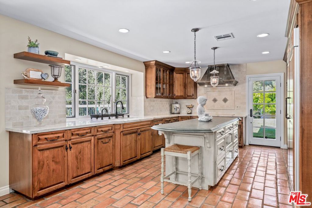Situated on a premier cul-de-sac in Calabasas Park, just minutes from the best the city has to offer, this beautifully appointed four-bedroom home features an impressive yard and a layout designed for comfortable everyday living and effortless entertaining. Living and dining spaces flow seamlessly to a spectacular outdoor setting with exceptional views. The expansive backyard is ideal for both relaxation and entertaining, highlighted by a viewing deck with sweeping valley-to-mountain views, a sparkling pool, lush landscaping, and mature citrus trees. A chef’s kitchen features designer finishes including Taj Mahal quartzite countertops, a soapstone island, and classic Saltillo tile flooring. The primary suite offers a private retreat with a spa-inspired bathroom, generous walk-in closet, and a soaking tub positioned to enjoy the views. A versatile bonus room can easily function as a home office, gym, or recreation space and offers access to a private rooftop deck. Three additional bedrooms provide comfortable accommodations, ample storage, and flexibility for guests or work-from-home needs. As part of Calabasas Park, residents enjoy access to the community lake for walking and recreation, along with close proximity to The Commons, Saturday’s farmers market, award-winning Las Virgenes Unified School District schools, top private schools, and excellent dining options.