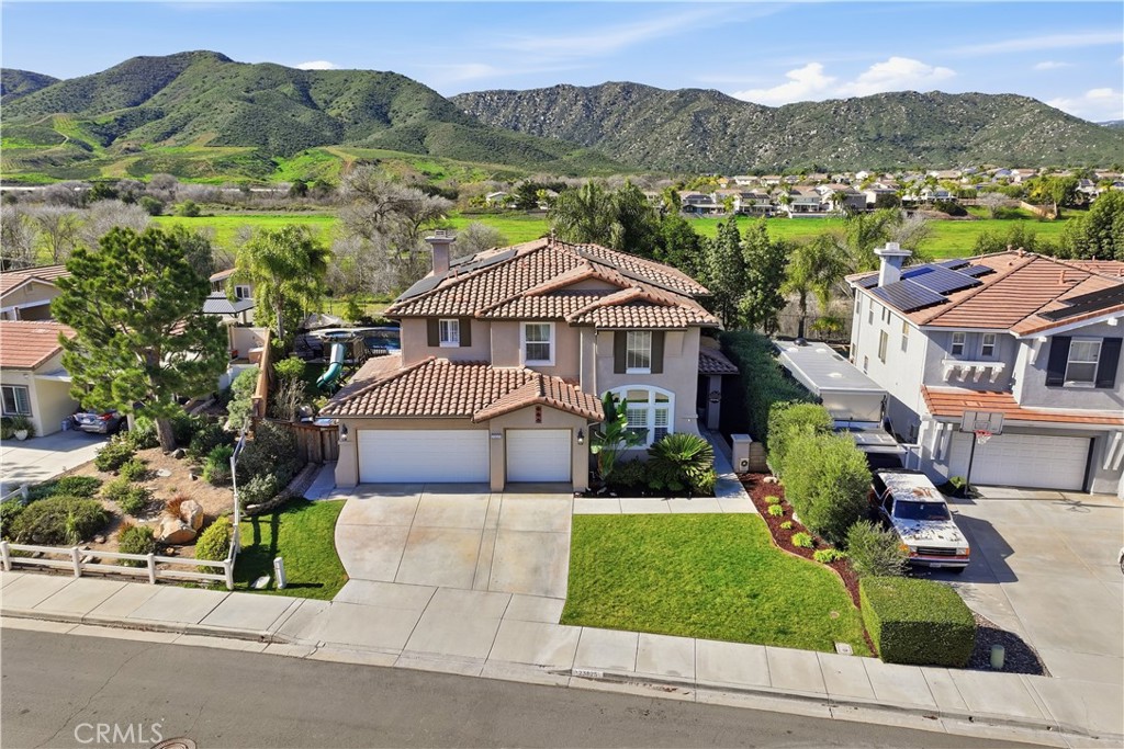 Welcome to this stunning 5-bedroom, 3-bath home nestled in one of West Murrieta’s most desirable neighborhoods, backing directly to Murrieta Creek with no neighbors behind and sweeping views toward the Santa Rosa Plateau. This beautifully upgraded, move-in-ready residence offers privacy, space, and an exceptional layout designed for both everyday living and entertaining. Inside is an expansive, light-filled floor plan featuring a formal living room and formal dining room, ideal for gatherings and special occasions. At the heart of the home is a newly remodeled kitchen with brand-new countertops, a huge center island with bar seating, high-end new appliances, and abundant cabinetry. The kitchen flows seamlessly into the family room, creating a warm and connected space. The MAIN LEVEL INCLUDES A FULL BED AND BATH, luxury vinyl plank flooring, and a convenient indoor laundry room. At the top of the stairs, you’ll find a spacious primary suite featuring a private retreat—perfect for quiet times with morning coffee or evening wine or can be a home office or infant room. (the retreat can easily be convertible into a 6th bedroom with its own separate hallway entrance) The hallway bathroom has been refreshed with new faucets and newly painted cabinetry. The 3-car garage includes built-in shelving and a workbench, offering excellent storage and functionality. A major highlight of the home is the PAID SOLAR, providing long-term energy savings and efficiency. Out back is your own private resort-style yard, complete with a pool and spa, a solid covered patio, and a built-in BBQ/kitchen with refrigerator and custom concrete countertops. The beautifully landscaped yard also offers gated access to the open space behind the home, perfect for afternoon walks while enjoying the panoramic views of the Santa Rosa Plateau. Located just minutes from Murrieta Downtown, top-rated schools, shopping, dining, and entertainment! This is home!