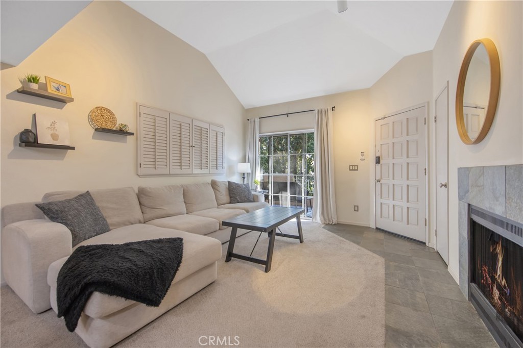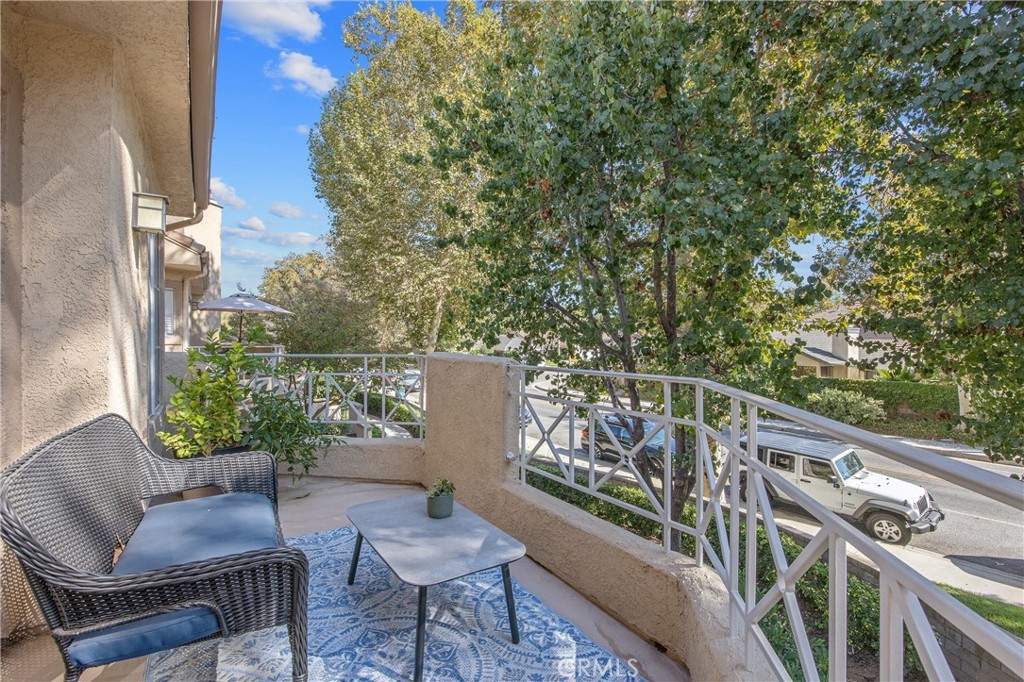 Stunning Upper Corner Unit with Custom Extended Kitchen Located in the Heart of Valencia. This Beautiful Home Boasts Soaring Ceilings and an Abundance of Natural Daylight compliments of the Living Room Balcony’s Sliding Door. The gourmet Kitchen is a Chef’s dream featuring Elegant Shaker style Cabinets, sleek Black Granite Countertops, a Stylish Glass tile Backsplash, under cabinet Lighting and Recessed Lighting. Design Details include Pull out Pantry doors, Pull out Spice Rack, and an Added Bar Area with Glass Display Cabinets, Perfect for Entertaining! A Wine Refrigerator and Stainless Steel Appliances complete the Upscale Kitchen. The Entry way is Adorned with Slate Flooring and Fireplace Surround and Custom Built-in Maple TV Stand with Shelves and Upper Shelving. Both Bathrooms have been tastefully Remodeled with matching Shaker-Style Cabinets, Black Granite Countertops, Updated Lighting, and Stone Tile Tub & Shower Surrounds, Offering a Spa-like Retreat. Additional Highlights Include a Smart Thermostat for energy efficient comfort, Keyless Entry, GE High Efficiency Front Load Stackable Washer & Dryer , and Motorized Shades in both Bedrooms. Sit back and Relax with morning Coffee or Evening Wine on the Living Room Balcony! Parking is a breeze with a One-car Garage, Plus an Additional assigned Parking Space. Residents also enjoy Incredible HOA Amenities including Resort-Style Pools, Spas and more! All of this and Located Walking Distance to Premier Shops, Dining & Entertainment making this a rare Opportunity to own a Luxurious Home in one of Valencia’s Most Desirable Communities.