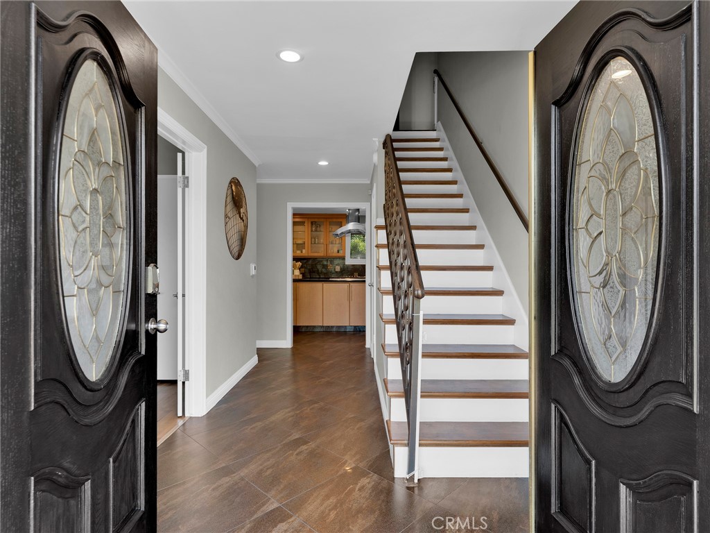 Tucked away in one of the most sought-after neighborhoods of Woodland Hills, this stunning two-story residence offers both privacy and tranquility. Boasting 2,566 square feet of living space, the home features 5 bedrooms and 3 bathrooms, all set on an expansive 11,067 square foot lot. Step through double entry doors into a bright & airy foyer, the living room is highlighted by soaring vaulted ceilings and an abundance of natural light. The updated gourmet kitchen is a chef’s dream, complete with premium stainless steel appliances, an oversized island with built-in cooktop, and a cozy breakfast nook. A downstairs bedroom has been transformed into a custom home office with built-in shelving, conveniently located next to a ¾ bathroom. Upstairs, you’ll find four generously sized bedrooms with walk-in closets, an updated full bathroom, and a spacious primary suite featuring an en-suite bath with views of the lush backyard. The serene backyard is perfect for entertaining or relaxing with family, featuring a PebbleTec saltwater pool and spa and ample grass area. Located within award-winning school districts and just minutes from The Topanga Mall, The Village and close to Calabasas as well. *Available furnished or unfurnished* Rentspree link: https://apply.link/H5FGU4U