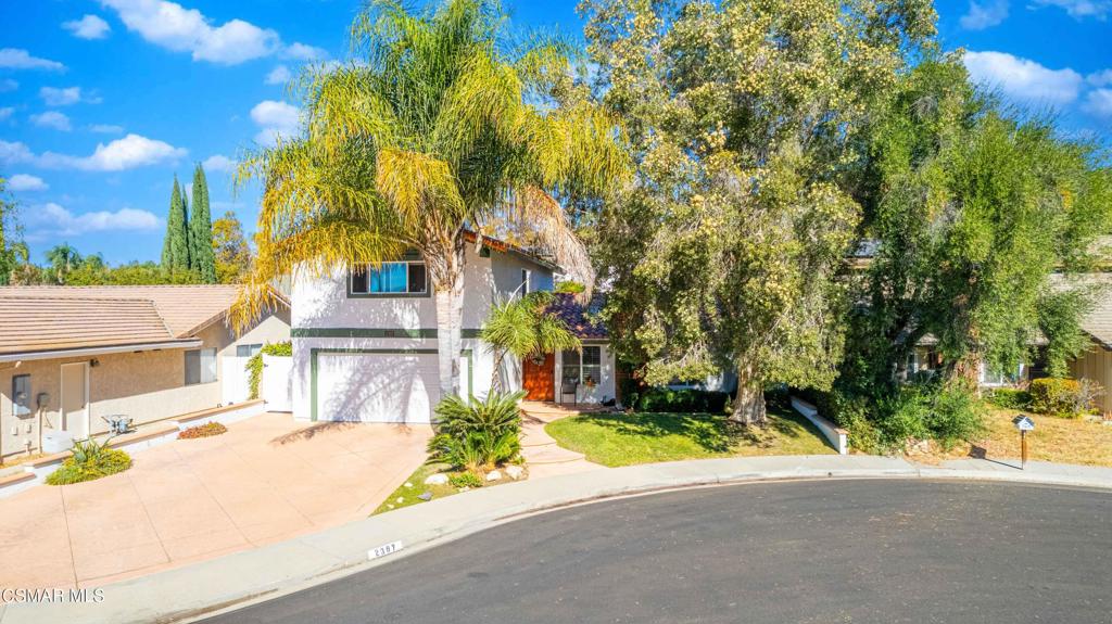 Move right into this beautiful home superbly located on a quiet culdesac in a wonderful area of Thousand Oaks. Situated at the edge of the beautiful Sapwi Trails Community Park, hiking and biking are just steps away. This home does not disappoint with it’s well-thought out floorplan and cheerful ambiance that includes vaulted living room ceiling with skylights; french doors, and plantation shutters. As the largest floorplan in the tract, this home boasts an additional added 220 sq ft of living area in the family room, where you need it the most! Kitchen adjoins with white cabinetry and a view out to the scenic backyard. There’s a breakfast bar featuring pendent lighting for casual meals, as well as a formal dining room with slider for moving the party outside for some al fresco dining. Rounding out the downstairs is a coffee or wet bar for enhanced entertaining and convenient powder room. There’s also direct access to the former garage, turned into flex space, makes a great guest/office space. Features laundry area, plus separate storage, it could easily be turned back into a two car garage or possible ADU. As you head upstairs you will find 4 comfortably sized bedrooms. The three secondary bedrooms share the hall bath outfitted with white subway tile while the spacious primary bedroom features delightful mountain views and is equipped with a large well organized wardrobe closet and upgraded bath. Once outside, the backyard beckons you to stay and play. Vacation at home in large sparkling pool and soothing spa, Dine under the stars or enjoy the lush landscaping, where butterflies and hummingbirds come to visit. The perfect balance of indoor comfort and outdoor enjoyment. Welcome home to SoCal living at its best!