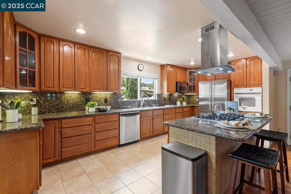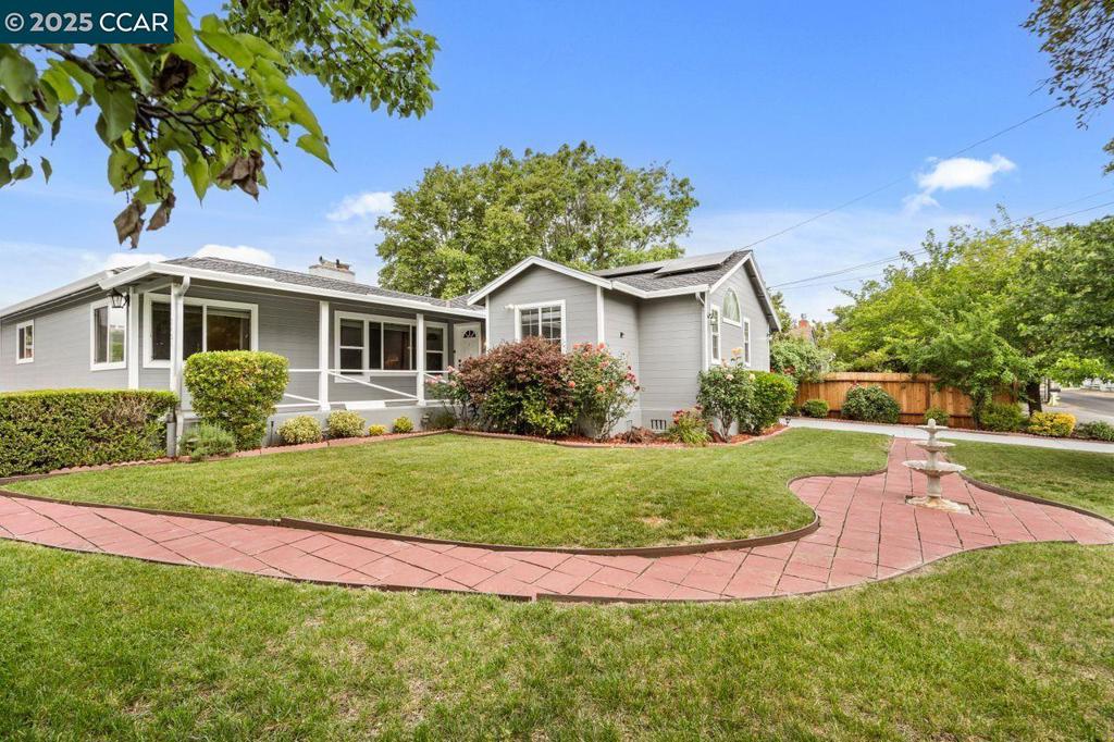 Beautifully updated 4BD/3BA single-level home on a spacious flat corner lot near top-rated Buena Vista Elementary. Open, light-filled layout with hardwood & tile floors throughout. Gourmet kitchen features granite counters, 5-burner gas cooktop, stainless appliances & ample cabinetry. Spacious primary suite with walk-in closet & spa-like bath w/ Jacuzzi tub. Upgrades include newer roof, gutters, copper plumbing, dual-zone HVAC, fresh exterior paint, leased solar & dual-pane windows. Attached 2-car garage + approximately 350 sq. ft. bonus storage. ADU potential. Private backyard w/ gazebo & fruit trees: almonds, persimmons, limes, peaches, figs, grapes, cherries & apricots. Walk to school and within the highly sought after Walnut Creek Schools plus minutes to BART, numerous shopping and dining options & freeways 24 & 680.