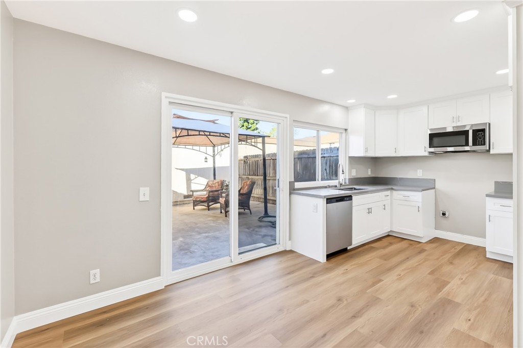 Welcome to this beautifully updated two-story townhome located in the desirable Bradford Place community in the heart of South Coast Metro. This move-in ready home offers 3 spacious bedrooms and 1.5 bathrooms within approx. 1,088 sq. ft. of comfortable living space. The bright and open floor plan features a welcoming living and dining area that flows seamlessly into an upgraded kitchen complete with quartz countertops and new wood cabinetry, dishwasher and microwave. The home has been thoughtfully updated with new waterproof flooring throughout, fresh interior paint, and recessed lighting that enhances the modern feel of the space. A sliding glass door opens to a private patio courtyard—perfect for relaxing, entertaining, or enjoying outdoor dining. The home is further enhanced by energy-efficient double-pane windows. Additional highlights include a two-car garage with washer and dryer hookups and extra storage. Residents of Bradford Place enjoy access to community amenities including a pool, spa, clubhouse, and beautifully maintained greenbelts. Ideally located just minutes from South Coast Plaza, popular dining, parks, and with convenient access to the 55, 405, and 73 freeways, this home offers the perfect blend of comfort, style, and location!
