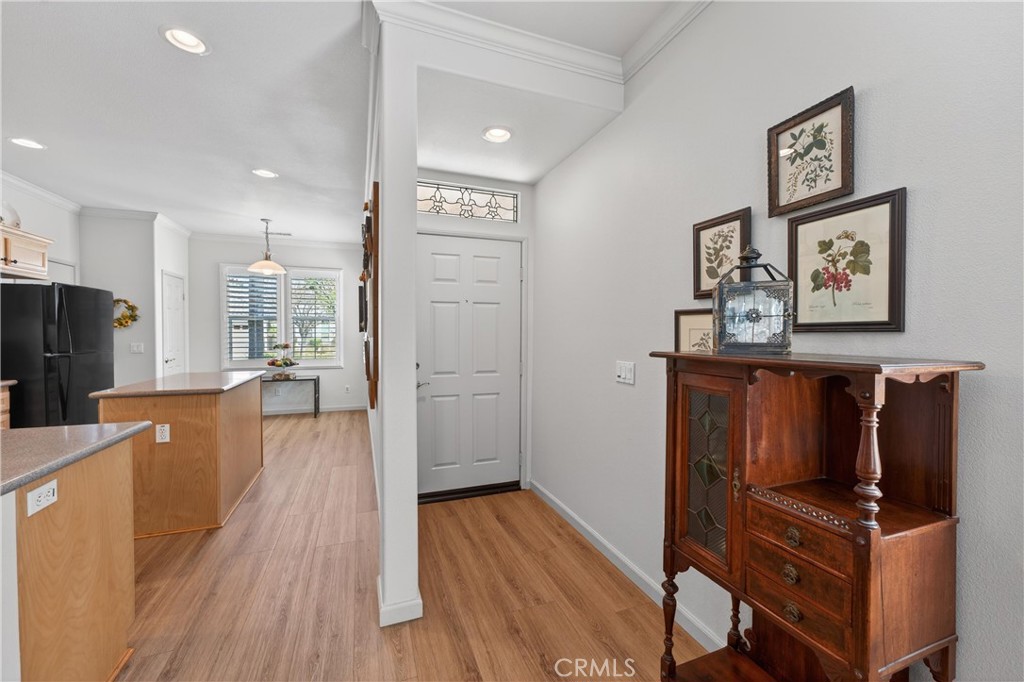 Your next chapter begins at Trilogy at Glen Ivy — Southern California’s premier 55+ resort community. Discover the exceptional lifestyle offered at Trilogy at Glen Ivy, the Inland Empire’s premier gated active-adult community. Private and beautifully maintained, this exclusive neighborhood is ideally situated against the scenic foothills of the Cleveland National Forest and surrounded by the lush fairways of the Glen Ivy Golf Club, offering a tranquil yet vibrant setting. This charming Pummelo Model is known for its distinctive English cottage appeal and thoughtful design. It is the only floor plan in the community featuring a kitchen nook positioned at the front of the home, creating a bright and cheerful space to start your day. Upon entering, you’re welcomed by an open and functional layout filled with natural light, soaring ceilings, crown molding, and elegant plantation shutters. The inviting family room showcases a custom built-in entertainment center with bookcases and a beautifully crafted fireplace mantel — perfect for cozy evenings or hosting friends. The kitchen is both stylish and practical, featuring a center island, stunning backsplash, and direct access from the two-car garage for everyday convenience. The spacious primary suite is designed for comfort, offering a generous walk-in closet, dual sinks, and a walk-in shower. Outdoors, enjoy a covered patio and fully fenced backyard that provides exceptional privacy — an ideal retreat for morning coffee or relaxing afternoon tea. Residents of Trilogy enjoy world-class amenities designed to support an active and social lifestyle: Indoor and outdoor pools, spa, cabanas, fireplaces, and BBQ areas, state-of-the-art fitness center with indoor walking track, lodge and grand ballroom, cards and billiards rooms, craft studios for ceramics and painting, social events, dances, and community dinners, bocce ball, tennis, and pickleball courts, the Lake Center with ballroom, meeting rooms, library, and HOA office, and large outdoor amphitheater for summer concerts under the stars. This is just steps away from the renowned Glen Ivy Hot Springs, a historic Southern California destination known for its mineral baths and spa experiences. The community is also conveniently located near shopping and dining options. This is more than a home — it’s a lifestyle. Experience the relaxed yet engaging atmosphere that makes Trilogy at Glen Ivy one of the most sought-after 55+ communities in the region.