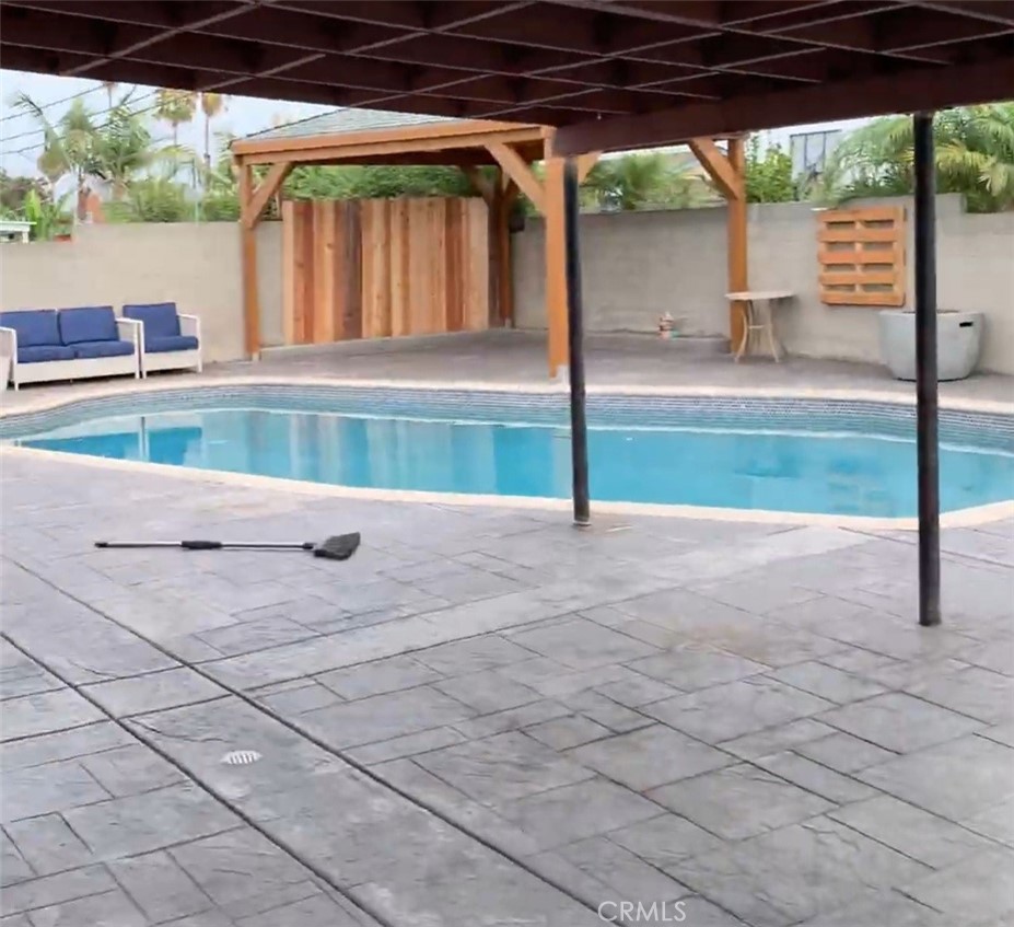 Affordable single story POOL home in located at the end of a cul-de-sac in North Santa Ana! Recent upgrades include a newer comp roof, PEX re-pipe, 4 mini-splits (AC), upgraded pool equipment, and extensive stamped concrete in the back yard around your in-ground Pebble Tec pool! Interior features include: Spacious living & dining room area with wood laminate flooring, upgraded kitchen w/granite counters + tile backsplash, stainless steel appliances, and lots of cabinet & counter space! There are 3 spacious bedrooms (all with mini-split ac’s) and 1.5 bathrooms! There is a 2 car attached garage with laundry area and paved RV access on the left side of the house! Dream back yard with extensive stamped concrete, huge covered patio area, another detached patio/gazebo, an in-ground Pebble Tec pool, and a grassy area too! Great location convenient to the 22/57/5 freeways, Disneyland, Santa Ana College, lots of shopping, and favorite restaurants too! (Due to rain…Pictures coming soon.)