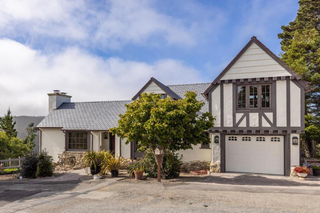Lovely, remodeled home in quiet section of Carmel Woods perched above the forest with long vistas – ocean view from some windows as well. Large living room with high beamed ceilings, a beautiful fireplace and hardwood floors, which are also throughout the entire main level. Dining room is oversized with tons of windows and views of the ocean. High quality kitchen with marble counter tops open to a family room with fireplace and access to the decks. Bookshelves line the library which could also be used as a fourth bedroom as it adjoins a full bath. Upstairs from main level are two bedrooms with vaulted ceilings and a full bath to share. Downstairs from the main level is the large primary suite with a fireplace, private patio and a large primary bath with shower and separate tub. In addition, there is an office and an amazing stone wine grotto.
