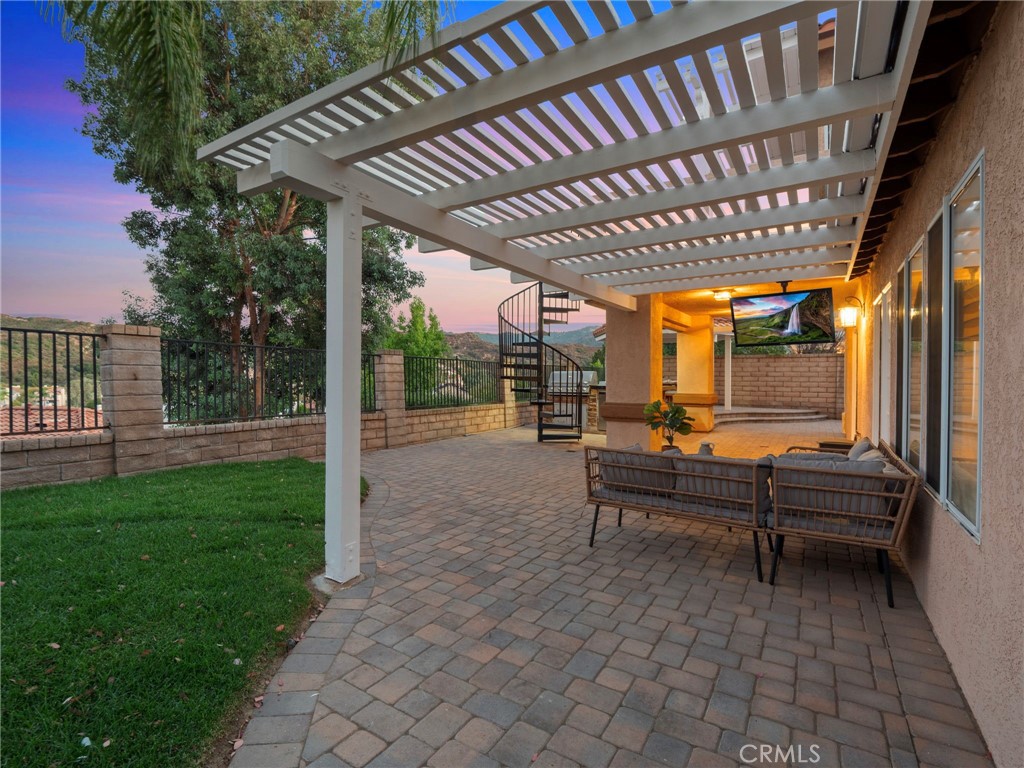 Welcome to 24512 Skyridge Drive, a beautifully upgraded 5-bedroom, 3-bathroom home tucked away on a quiet cul-de-sac in Newhall’s highly sought-after Hidden Valley community. With 3,059 sq. ft. of living space on a 7,050 sq. ft. lot, this residence blends style, comfort, and entertainer’s appeal. Inside, the living room features soaring beamed ceilings and a fireplace, while the expansive family room showcases a wet bar and French doors leading to the backyard. The kitchen is designed with granite countertops, recessed lighting, stainless steel appliances, a breakfast nook, and tile flooring. A downstairs bedroom with double French door entry and walk-in closet provides the perfect setup for guests or multi-gen living. Upstairs offers a loft, three spacious guest bedrooms, and a primary suite with a beautifully updated bathroom and French doors opening to a private balcony with expansive mountain views. Upgrades include engineered hardwood flooring throughout, plantation shutters, freshly painted interior and exterior, dual-zone HVAC (2025), solar lease at just $160/month, and a fully redone roof (2020). The 3-car garage is a dream with perimeter storage cabinets and pull-down attic storage. Step outside to a true entertainer’s paradise: a granite-tiled outdoor kitchen with built-in BBQ, dual gas burners, sink, mini fridge, and outdoor TV. A covered gazebo, paver-lined patio, small grassy play area, and sweeping 180° mountain views complete this incredible retreat. Enjoy resort-style Hidden Valley HOA amenities: pool, spa, tennis and pickleball courts, private park, playground, hiking trails, and gated RV/boat storage. Convenient access to the 5 freeway makes commuting easy while keeping you close to the best of Santa Clarita Valley living.