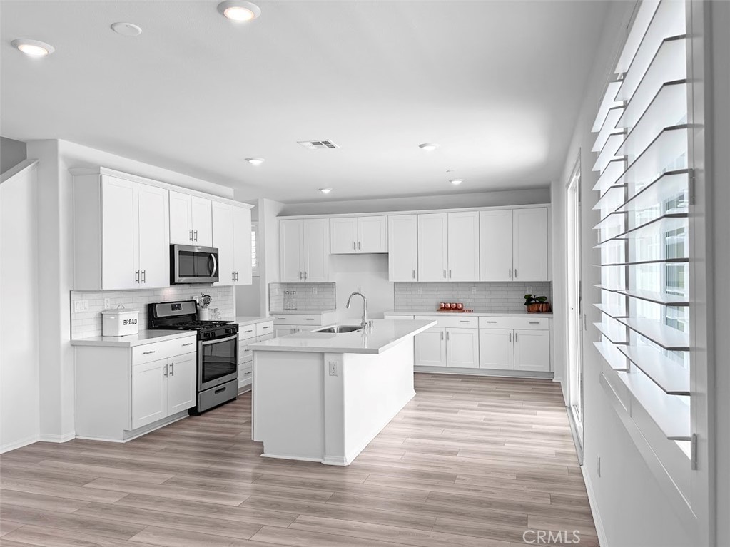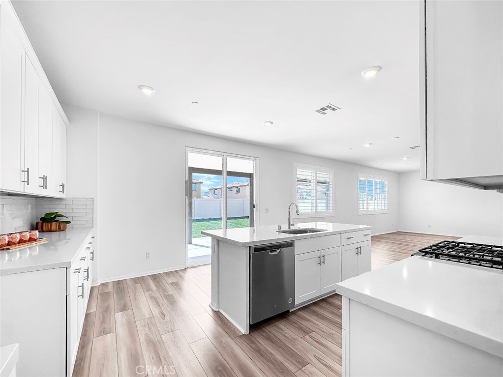 Welcome to this exceptional turn-key 5 bedroom / 3 bathroom home built in 2022, located in highly desirable Audie Murphy Ranch community—where family living meets modern convenience with nearby parks, pools, and scenic trails. Designed with families in mind, the open-concept great room seamlessly connects the spacious family room, dining area, and upgraded kitchen featuring shaker cabinetry, quartz countertops, tile backsplash, stainless steel appliances, center island with breakfast bar and a spacious walk-in pantry. A downstairs bedroom and full bath offer flexibility for guests or multi-generational living. Upstairs, enjoy a versatile loft ideal for a playroom or media space, convenient laundry room, and a light and bright primary suite with a large walk-in closet and gorgeous primary bathroom with dual-sinks. The backyard offers a covered patio and grassy area—perfect for or entertaining with plenty of room to play. Centrally located with direct access to 15 and 215 freeways and conveniently close to area parks, schools, shopping, restaurants and so much more!