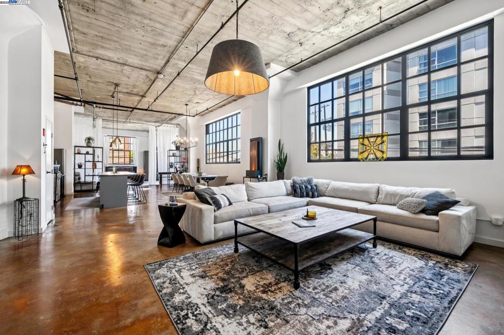 With a rich history, this nearly 2000 sqft. industrial loft provides a brilliant canvas to create your own amazing story. Formerly Safeway’s 1920’s corporate warehouse this rare property houses the original walk-in corporate safe… but save your money elsewhere and enjoy the striking chandelier suspended in your bedroom, office or library. Rugged industrial chic has never felt so fresh with oversized black enamel pendants, chandeliers, and crisp white walls. The towering concrete ceilings, pillars, and steel framed windows suggest the historical story, while the modern updates suggest you can absolutely have it all. The floorplan is effortless, the space, simply enormous. The kitchen is simple, practical, anchored by a large island where your friends are sure to gather. Up the stairs find your secret hideaway, an open loft might be the perfect playground for media, hobbies, or a Zenful retreat. Two large closets give ample storage, or perhaps some coats and a near perfect walk-in wine cellar. In-unit laundry with secured two-car parking and a large basement storage closet sweeten the deal. Fourth Street Lofts is an exciting community in the fabulous Jack London Square neighborhood. Originally a 1923 Safeway Corporate warehouse, this complex’s rich history feels iconic.