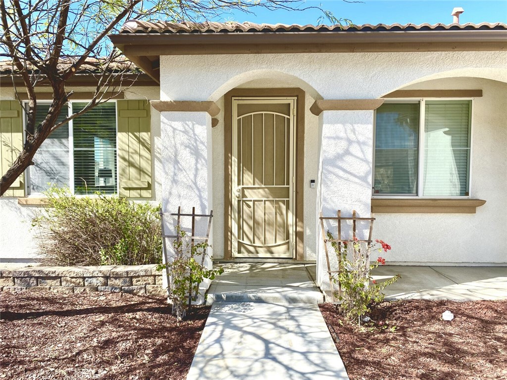 Stunning 4 bed (3+office), 2 bath home with in ground pool and spa! Nestled on a cul-de-sac, this home has a view of the local hills of Menifee that light up at night from house lights and also commands a view of the snow capped mountains of Big Bear. Located in the Audie Murphy Ranch community, the inside of this turn-key home features beautiful vinyl hardwood floors, a rock wall, stunning floor to ceiling windowed french doors leading to the backyard from the master bedroom, and a beautiful open concept. The backyard has a California room along with fully paid off solar power, and is conveniently located near a sports park complete with baseball field and skating area. Other features include a three car tandem garage, reverse-osmosis water filtration system, whole house water softener, matching granite countertops throughout, touch-activated kitchen sink, laundry room sink, dark stainless steel appliances, washer and dryer, dual master sinks, master closet, corner fixture installed in the office providing storage space, 14 foot ceilings, workbench and cabinetry installed in garage, ceiling fans in each bedroom, a gated dog run in the backyard, and the list goes on! Located nearby both 15 and 215 freeways, there are tons of shops and grocery stores to choose from. This home has plenty of features to entertain guests, but also feels cozy and warm for the days where relaxation is the goal. Don’t miss it!