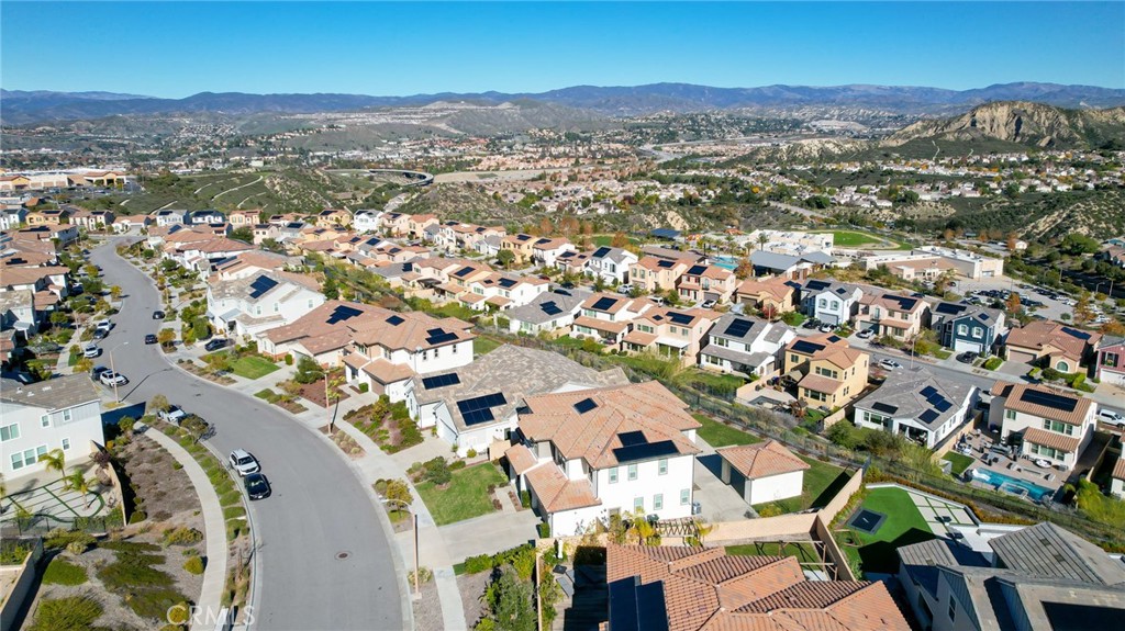 REDUCED PRICE by $100,000. Breathtaking panoramic views and upgrades surpassing model home! Situated on a highly desirable premium lot. Welcome to 25110 Cherry Ridge Dr, a two-story single-family home nestled in the highly desirable Aliento gated community in Santa Clarita. Built in 2019, this modern residence offers the perfect blend of luxury, comfort, & contemporary design. One of this home’s standout features is ITS PEACEFUL CITY & MOUNTAIN VIEWS, providing a serene & picturesque backdrop from both inside the home & outdoor living spaces. Whether you’re enjoying your morning coffee or winding down at sunset, the views elevate the overall living experience. Boasting 4 bedrooms & 3.5 baths (one bedroom with en suite bathroom is downstairs), huge loft & office, this 3,442 sq. ft. home sits on an expansive 9,662 sq ft lot. The floor plan is open and airy with high quality finishes throughout. Upstairs, a luxurious primary suite & covered balcony offers plenty of privacy and comfort. Enjoy stunning city and mountain views from the living room, dining room & bedrooms. Modern features are a tankless water heater, fully paid solar panels, and wifi-enabled thermostats, garage door opener, front door lock, and light switches (living & dining). Interior upgrades are full-height stacked kitchen cabinets w/ stained solid wood doors and soft-close cabinet hinges; 15-foot stacked sliding doors in living room; 12-foot French doors in primary bedroom; sliding door in dining room; engineered quartz countertops, plantation shutters by Norman with rod-less design; ceiling speakers in living room & speaker pre-wire in loft (rear surround only); stained solid wood handrail & iron balusters; vinyl plank flooring downstairs; Carpeting upstairs & in staircase; upgraded tile flooring in bathrooms & laundry; and recessed lighting in living room, kitchen, den, and loft. Exterior upgrades are: covered sunroom outside living room; covered balcony outside primary bedroom; covered pavilion in the backyard for year-round outdoor entertaining; landscaped yard, patio, and sprinkler/dripper system. Convenient access to shopping, dining, parks, and major commuter routes. Community pool, recreation center, and gym. Close to top rated local schools, Costco, Target, Stater Brothers, Lowe’s, Trader Joe’s, Toppers, Edwards Cinema & excellent restaurant and entertainment options. Close to 14 freeway. This property is an incredible opportunity to own a beautifully maintained, move-in ready home.