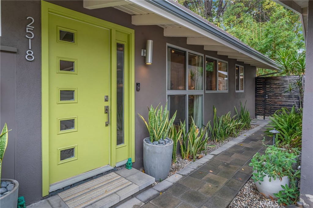 This stunning mid-century modern retreat seamlessly blends iconic design with effortless indoor-outdoor living. Polished concrete floors run throughout the home, complemented by rich wood doors and exposed wood beams that add warmth and architectural interest. The living room is anchored by a striking stacked brick fireplace, creating a cozy yet stylish focal point beneath skylights that flood the space with natural light. The kitchen features an apron-front sink, clean modern cabinetry, and a thoughtfully designed dry bar complete with a beverage refrigerator, perfect for entertaining. Multiple expansive sliding glass doors open to the lush backyard, intentionally designed to preserve uninterrupted views and create a seamless connection to the outdoors. Two bedrooms offer floor-to-ceiling windows that frame the serene outdoor space, along with ceiling fans and beautifully appointed full bathrooms. Step outside to a private oasis featuring pergola-covered fire pit area with retractable sail shades, surrounded by mature landscaping, ideal for relaxing evenings or gathering with friends. Additional highlights include a two-car garage and a layout that celebrates light, flow, and timeless mid-century style. This home is a rare opportunity to enjoy classic design paired with modern comforts in a truly inviting setting.